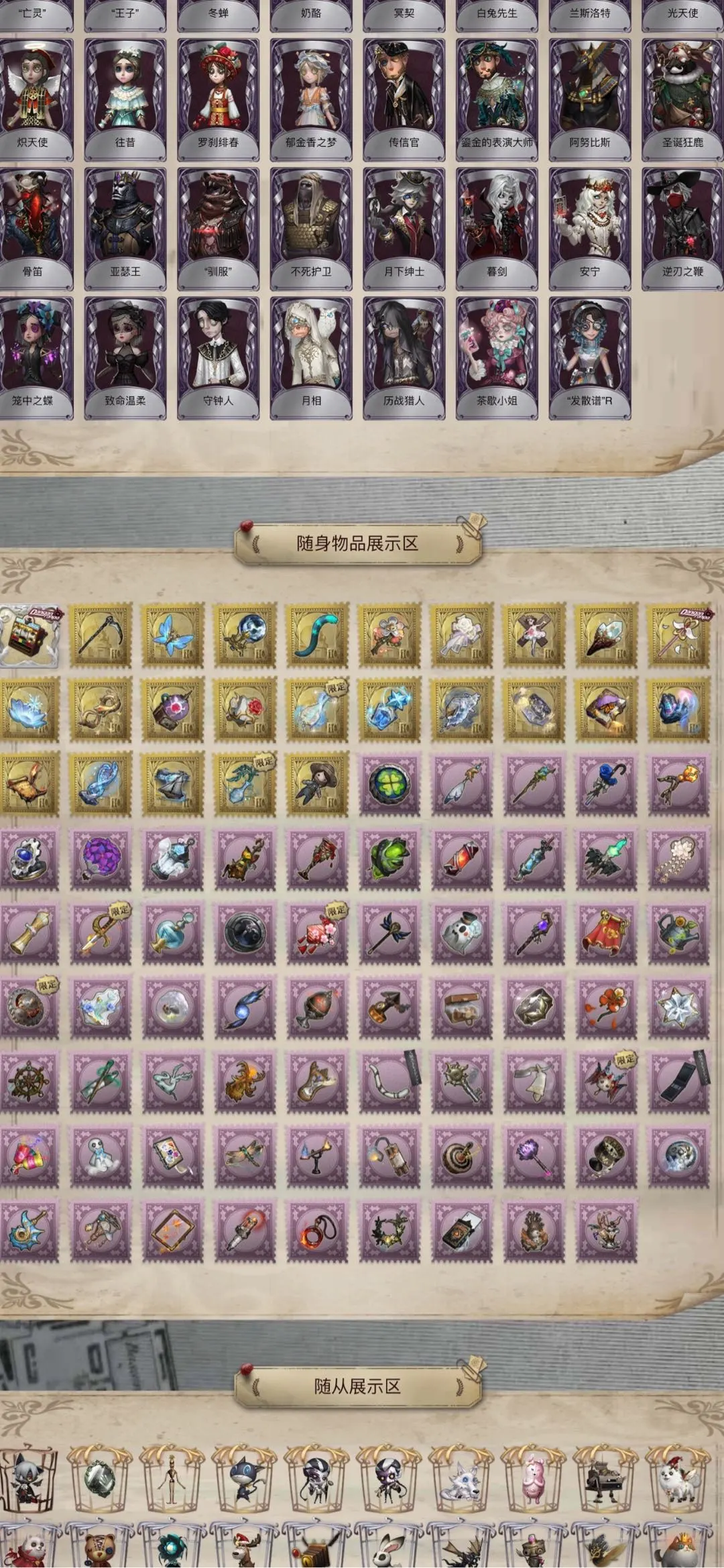 弹簧手 思明 绿纹大触 白纹大触 怀古 黑天鹅之羽 诡笑症 月佑者 慵懒的兔先生 蛮牛之力 光织守护 长腿小姐 海西遗风 不愿醒来的女孩 书记官 仙鹤 彼岸 波塞冬 安魂曲 箭竹 神圣之辉 梦之使者 厄运 朝圣者 笼中之蝶 致命温柔 暮剑 月相 历战猎人 禁闭院长 “守财奴” 缄默者 噩之牙 被时间遗忘的男孩 最后一舞 骨笛 雀舌 迷途诗人 弄臣 可可豆 罗勒 女高音