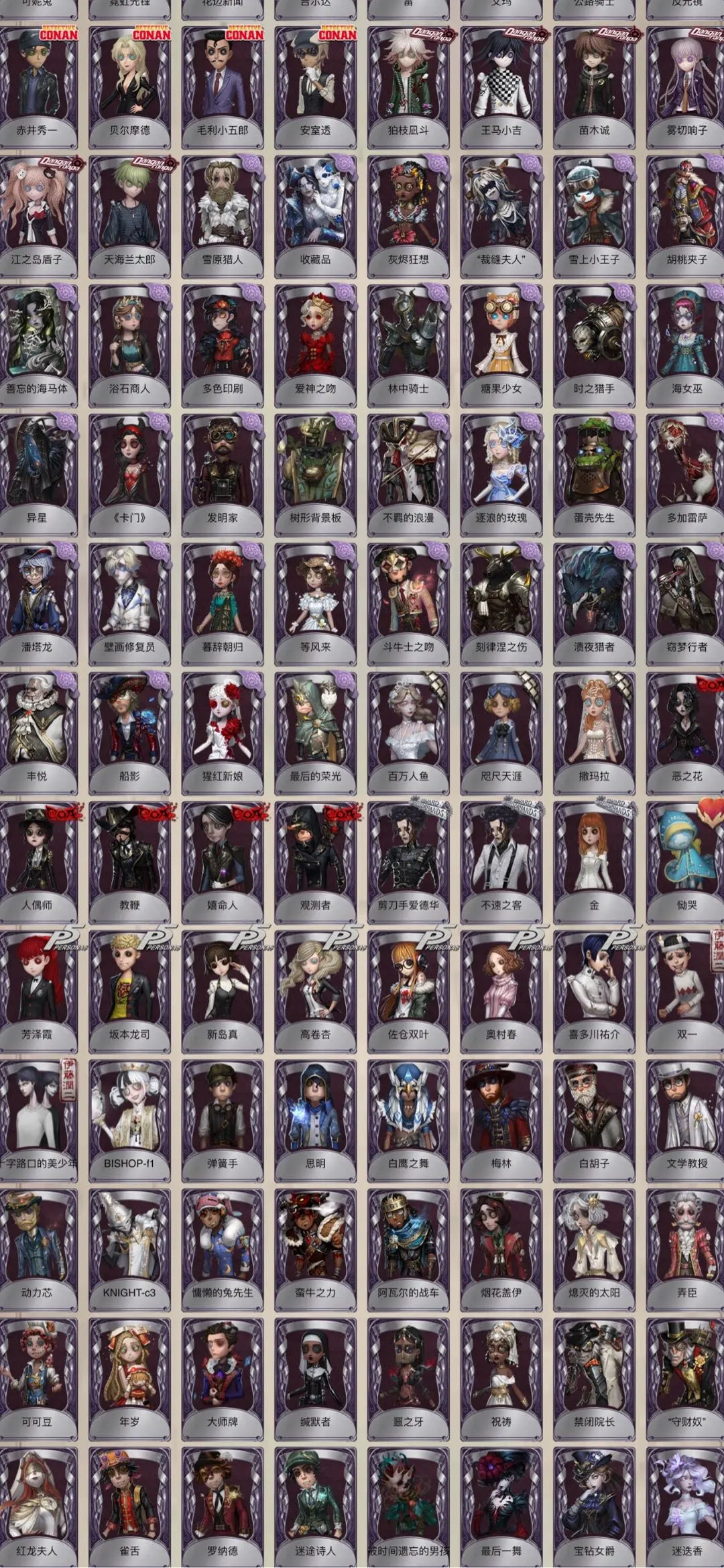 建筑师 白无垢 死灵师寒霜 摩根勒菲 今夜不再 菲尼克斯 海盐特调 孤月骑土 渊真相小姐 Lady K 恸哭 毛利小五郎 赤井秀一 安室透 贝尔摩德 耶梦加得