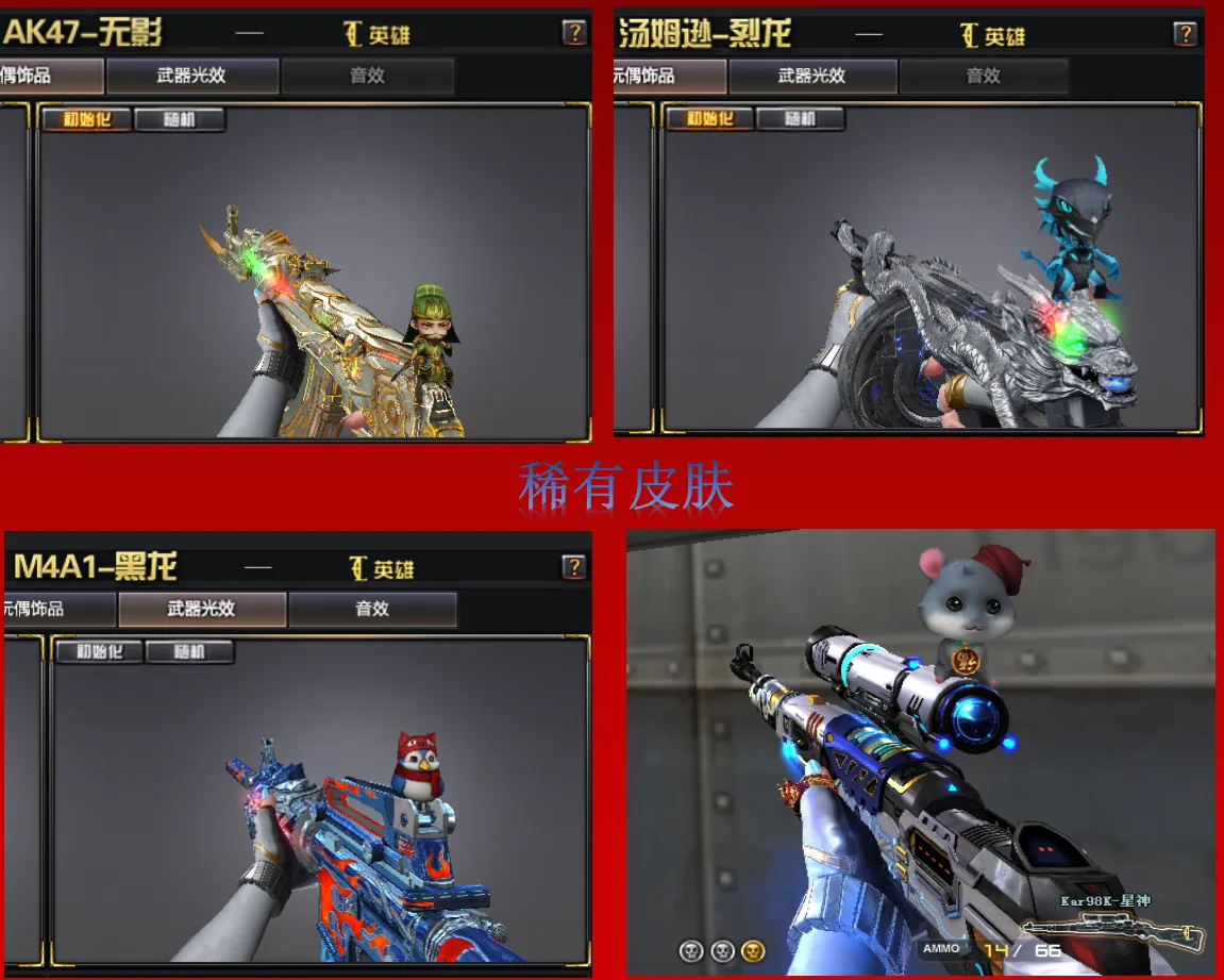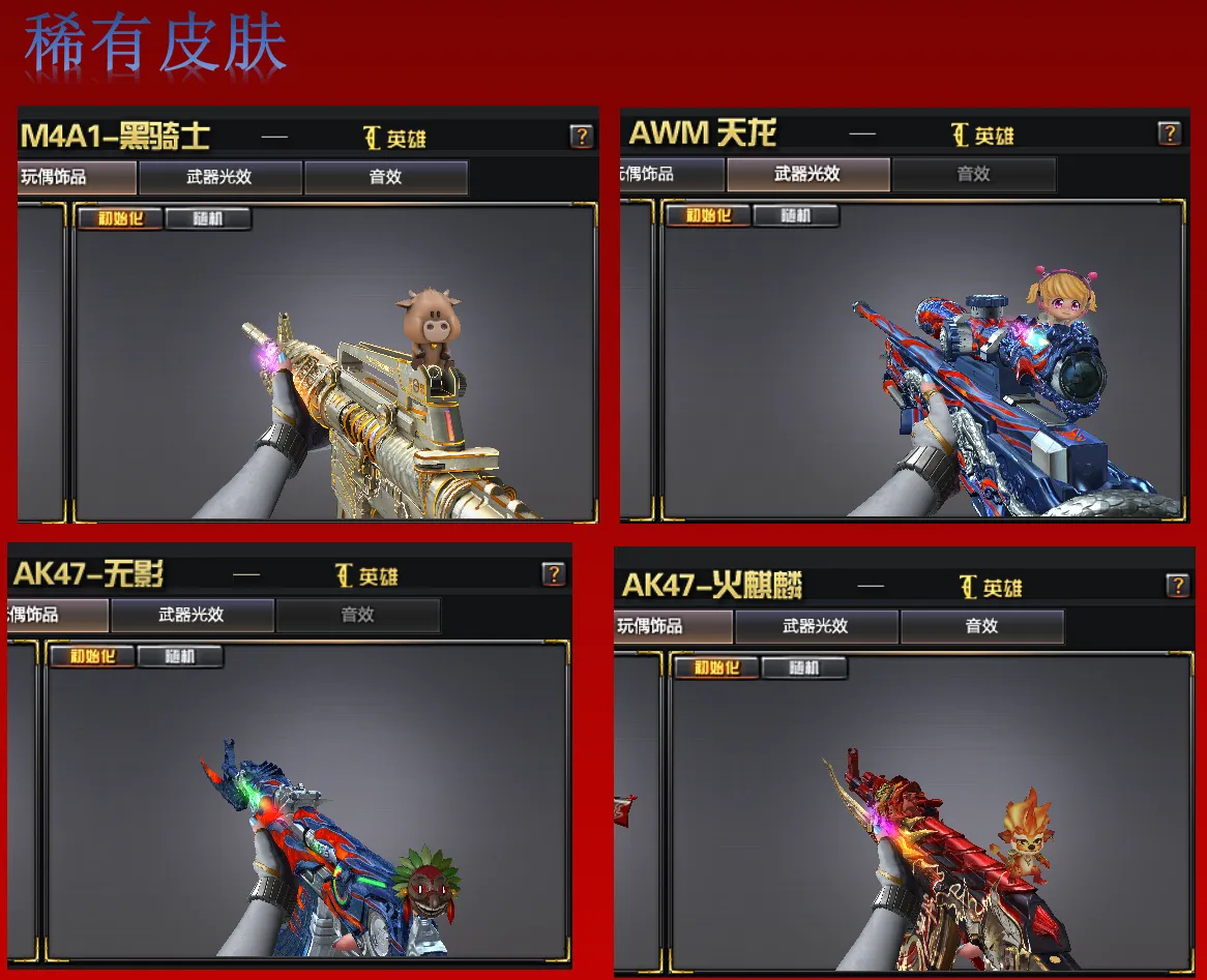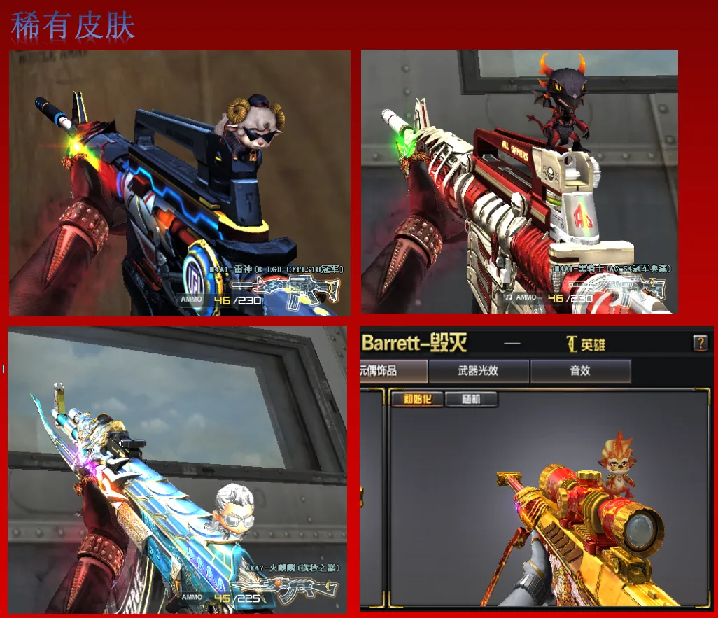 海量英雄级武器、各种掌上武器、其他稀有皮肤及永久光效、
