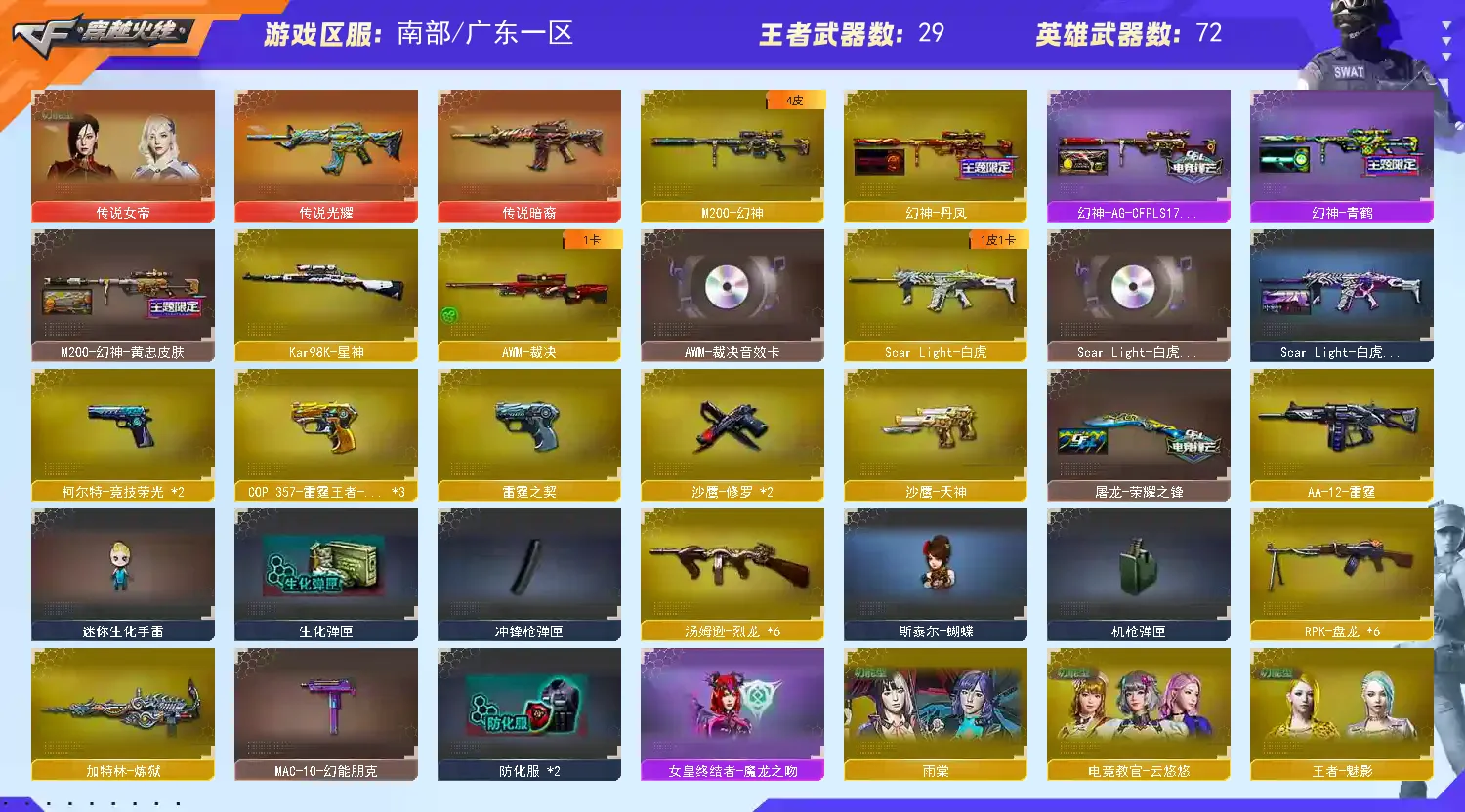 生化套装(死神+6烈6盘1炼+斯太尔-蝴蝶+死亡之眼+巧克力-斯太尔)、各种稀有玩偶、适用于挑战、爆破、生化的各种3防4防超稀有角色(全网首发莎莎)。