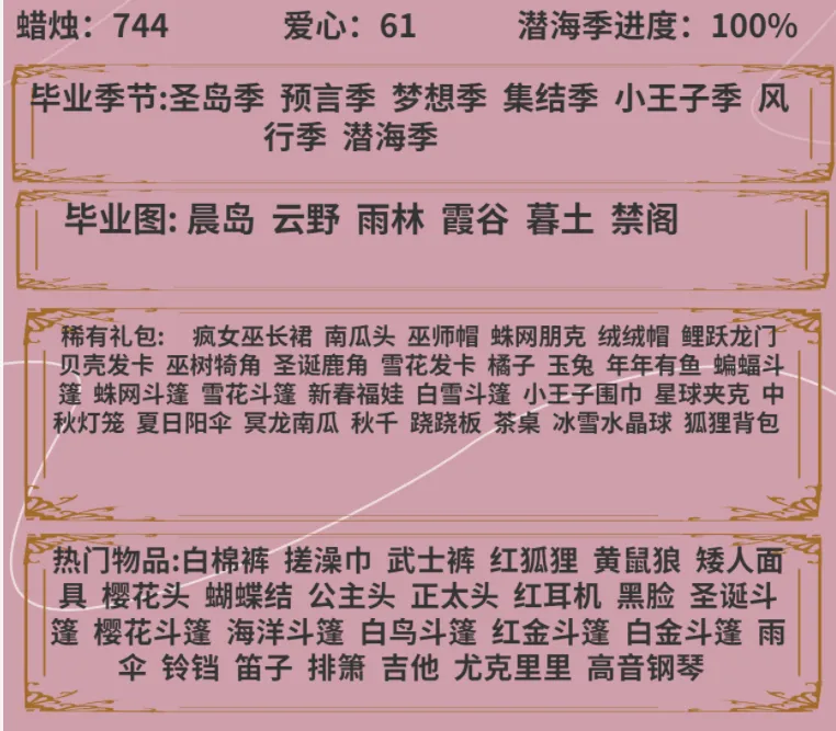 毕业季节:圣岛季预言季梦想季集结季小王子季风行季潜海季