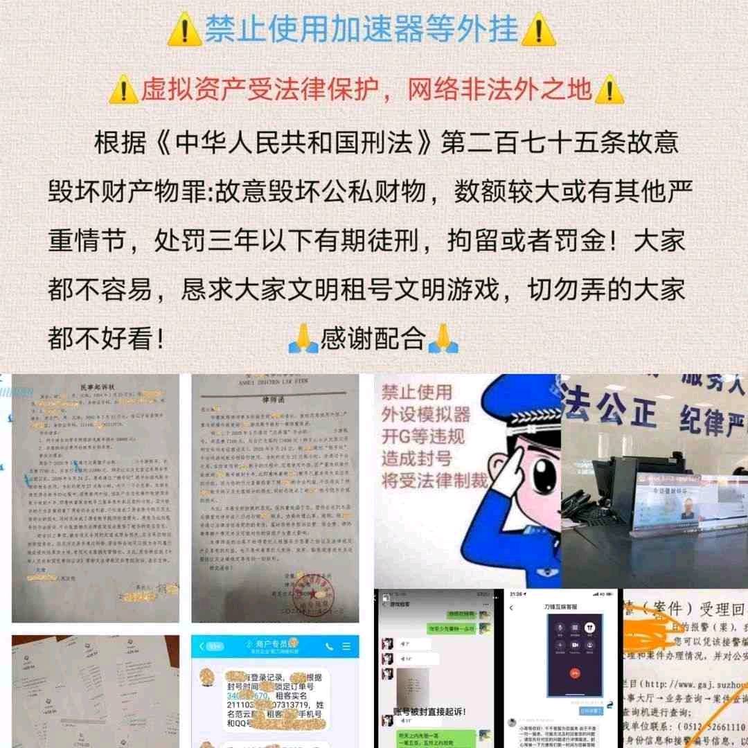 租赁押金:0元(不得使用外挂等第三方软件,违反将会扣除押金)
