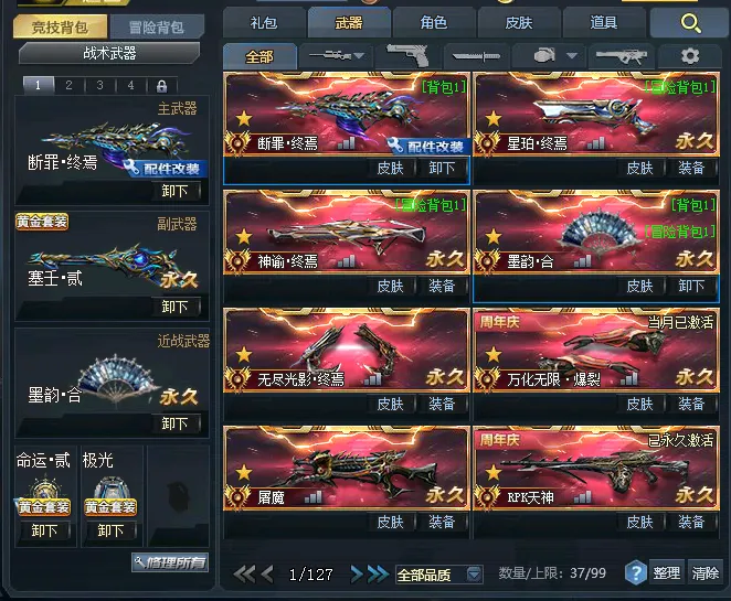 ✪传说武器:【断罪.终焉】【星珀.终焉】【RPK主宰】【神谕.终焉】【墨韵.合】【无尽光影.终焉】【万华无限.爆裂】【屠魔】【AK47天神X2】【RPK天神X2】