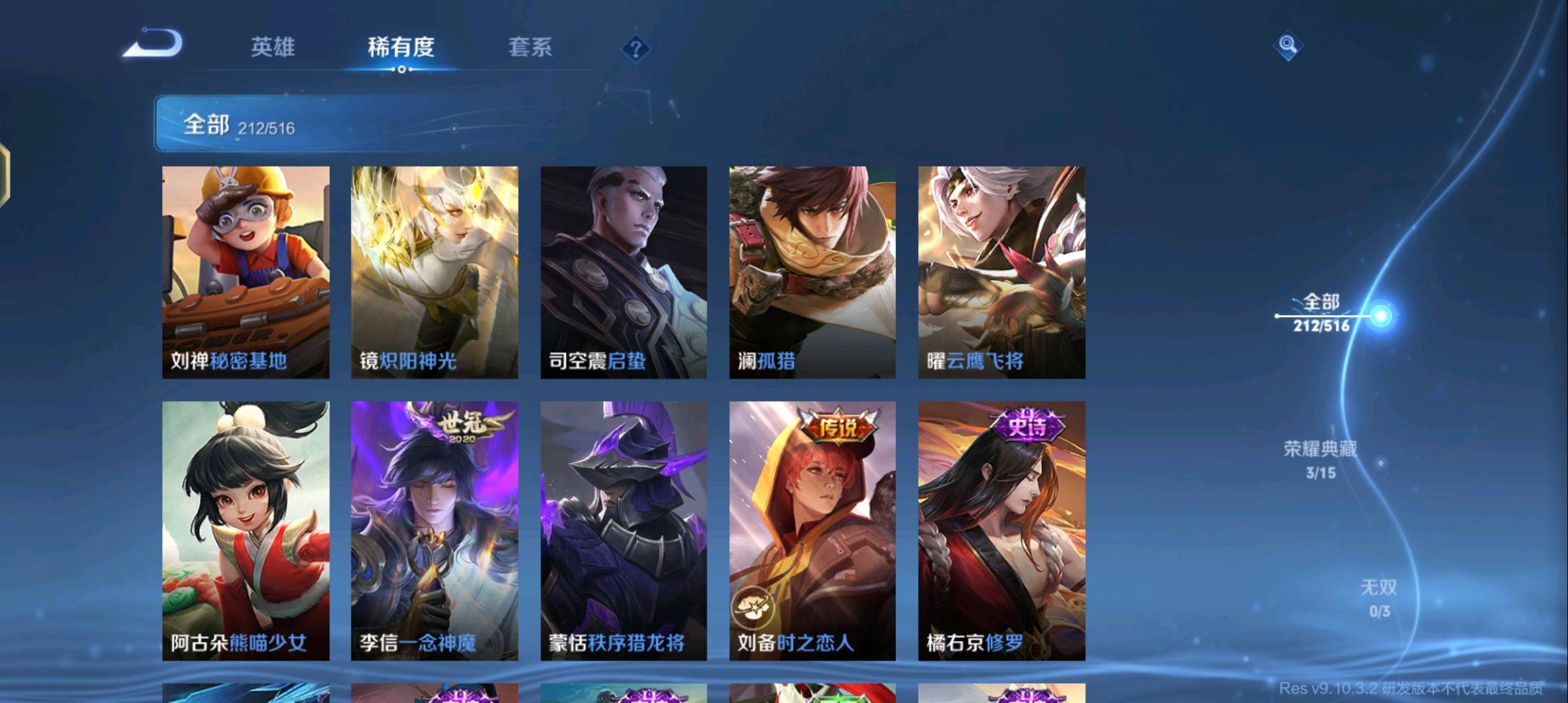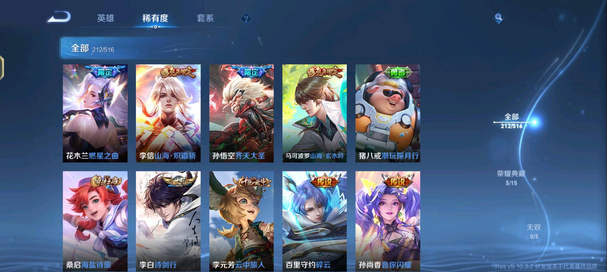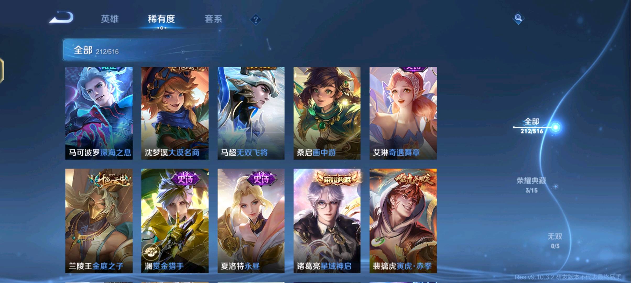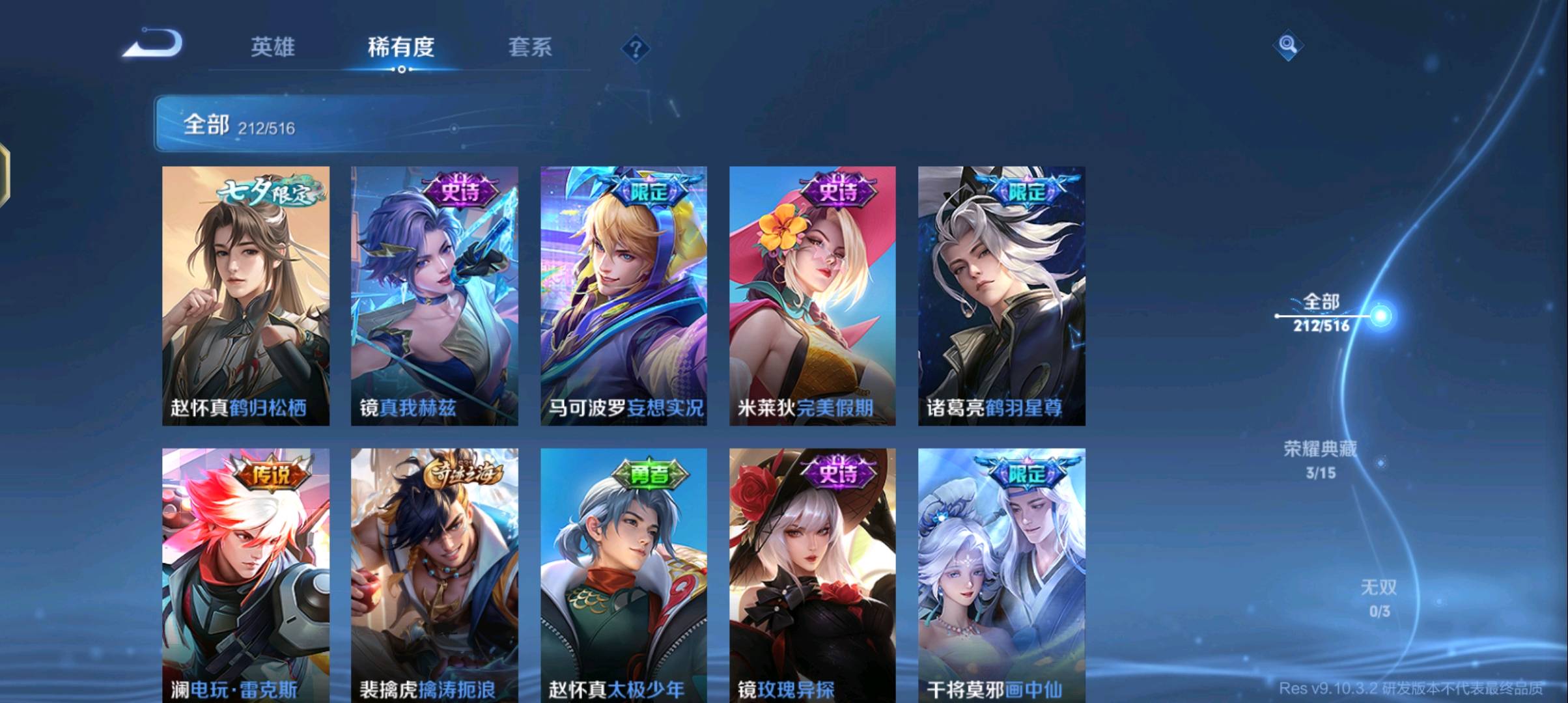 【安卓】 加q上号,V7,215个皮肤3个荣耀典藏基本都有