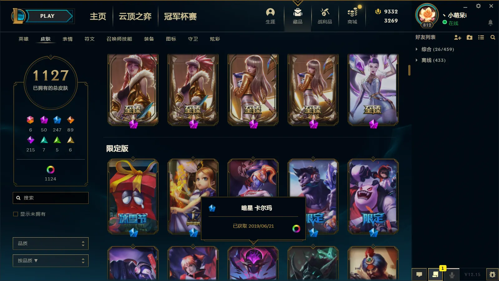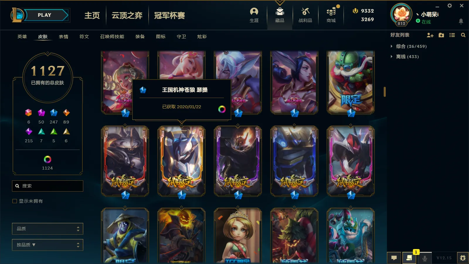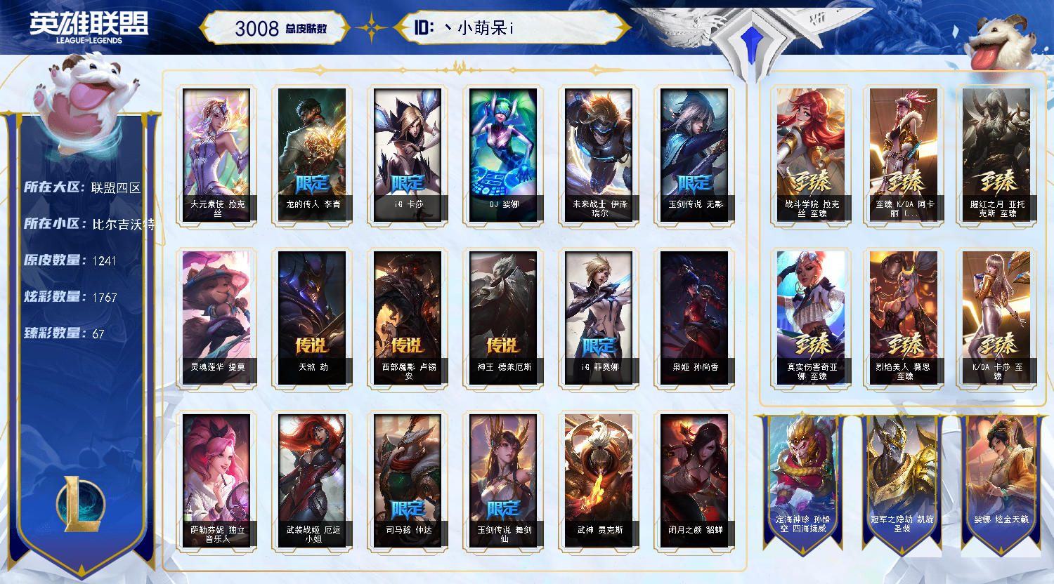 3100皮肤〓84至臻海克斯〓摄魂龙瞎〓冰桶哥特〓斩星穿星〓玉剑男女刀〓王国机神全套〓黑夜黎明