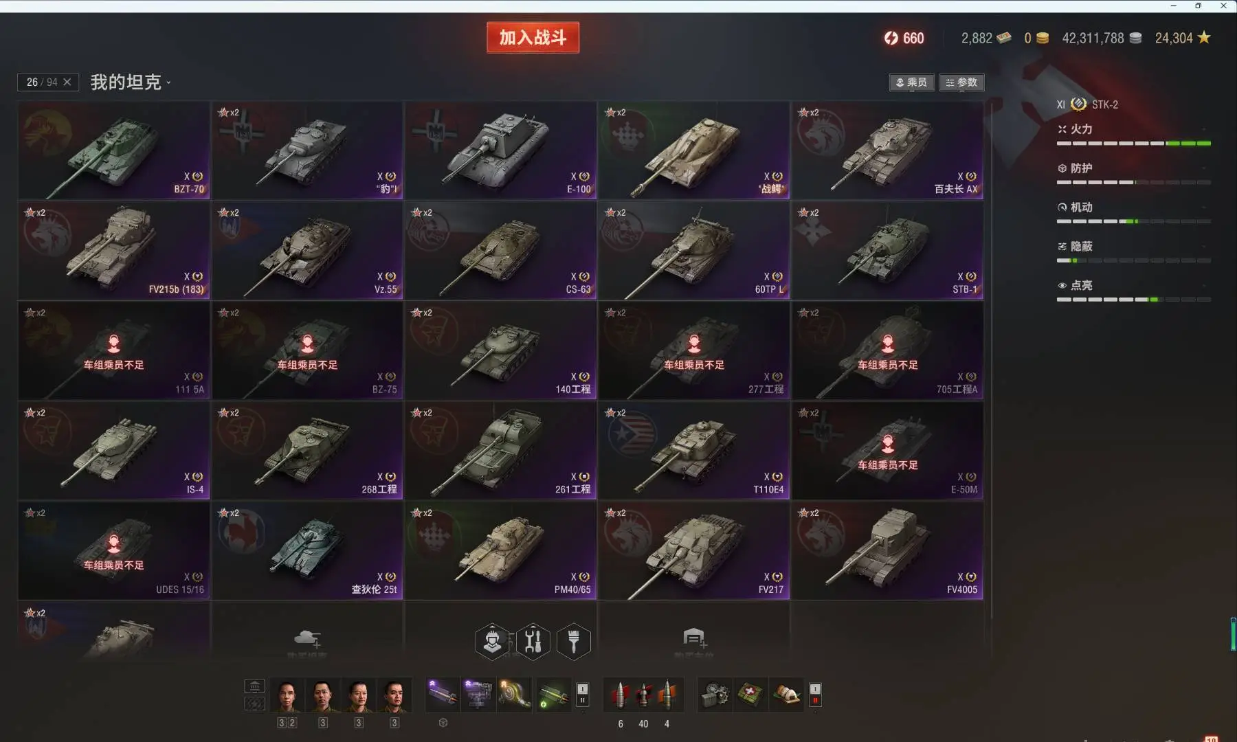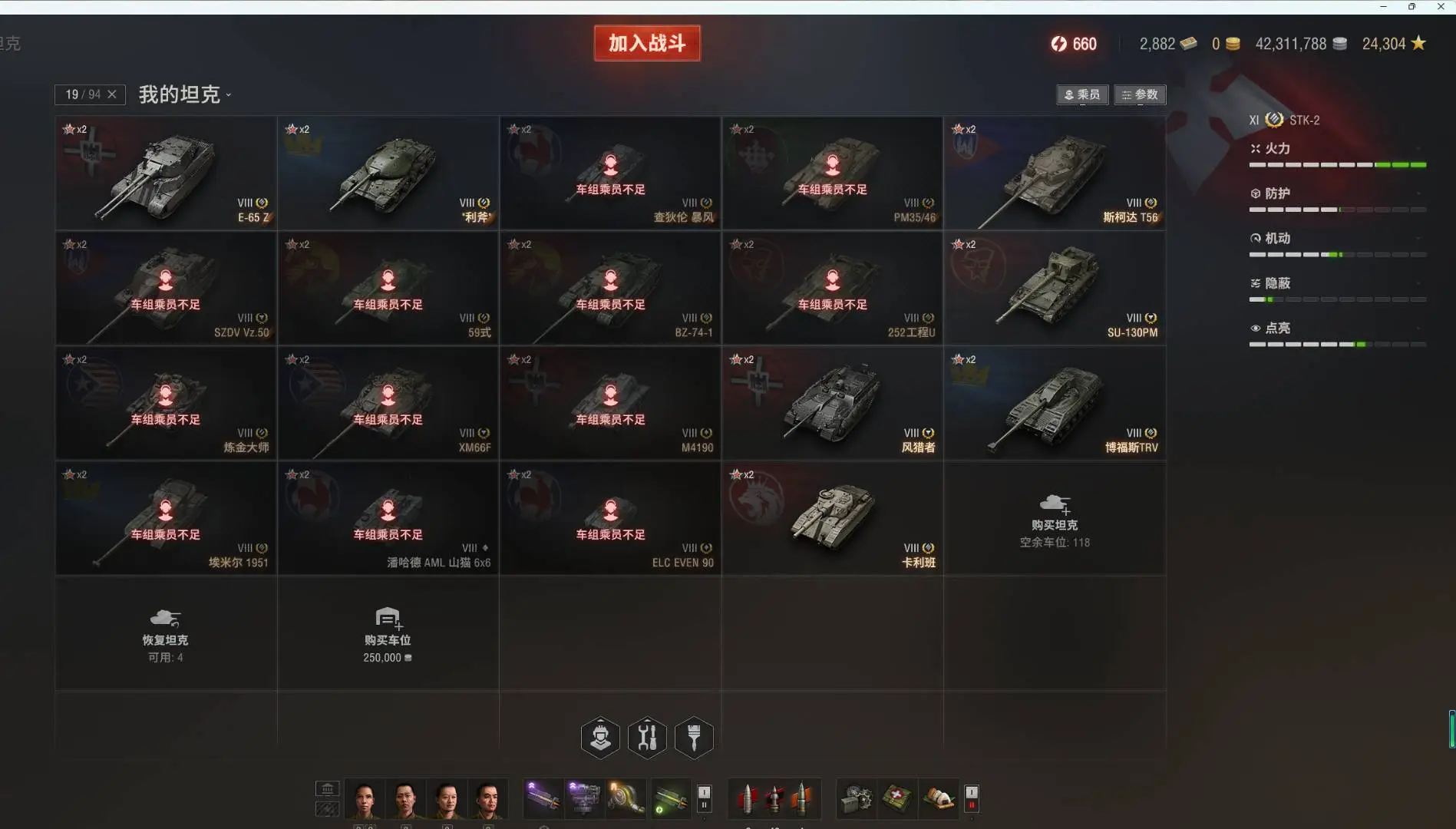注意事项:1,进入游戏后,如果车辆情况不符。那是因为前面的玩家筛选了自己玩的坦克,其他的隐藏了。坦克显示栏,左下角小坦克标志,点进去把所有系别和级别选上,坦克就全部出来了。