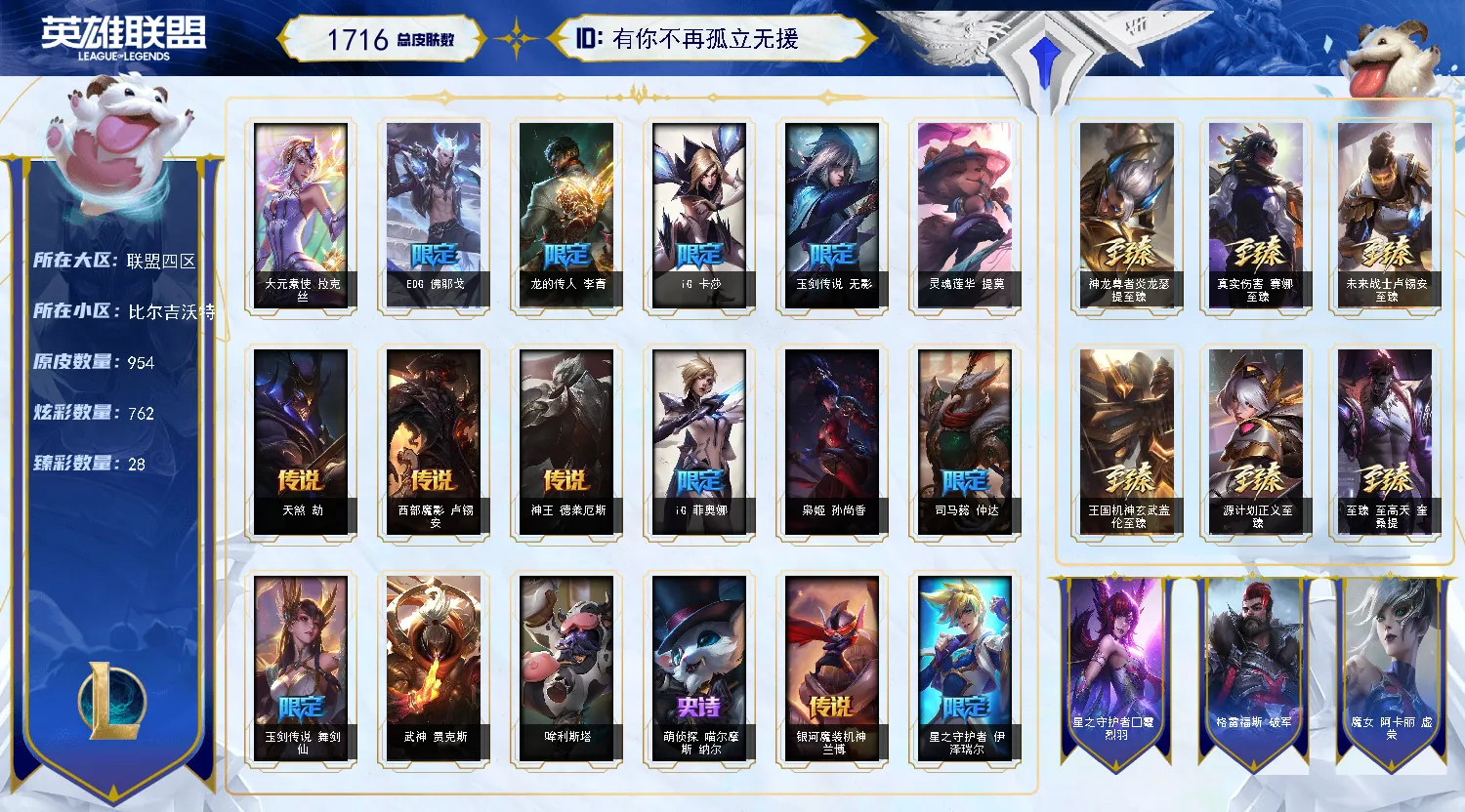【联盟四区】1711皮丨4色龙瞎丨EDG/IG套丨 至臻JS卡莎丨7周年男女刀丨小小英雄金克斯