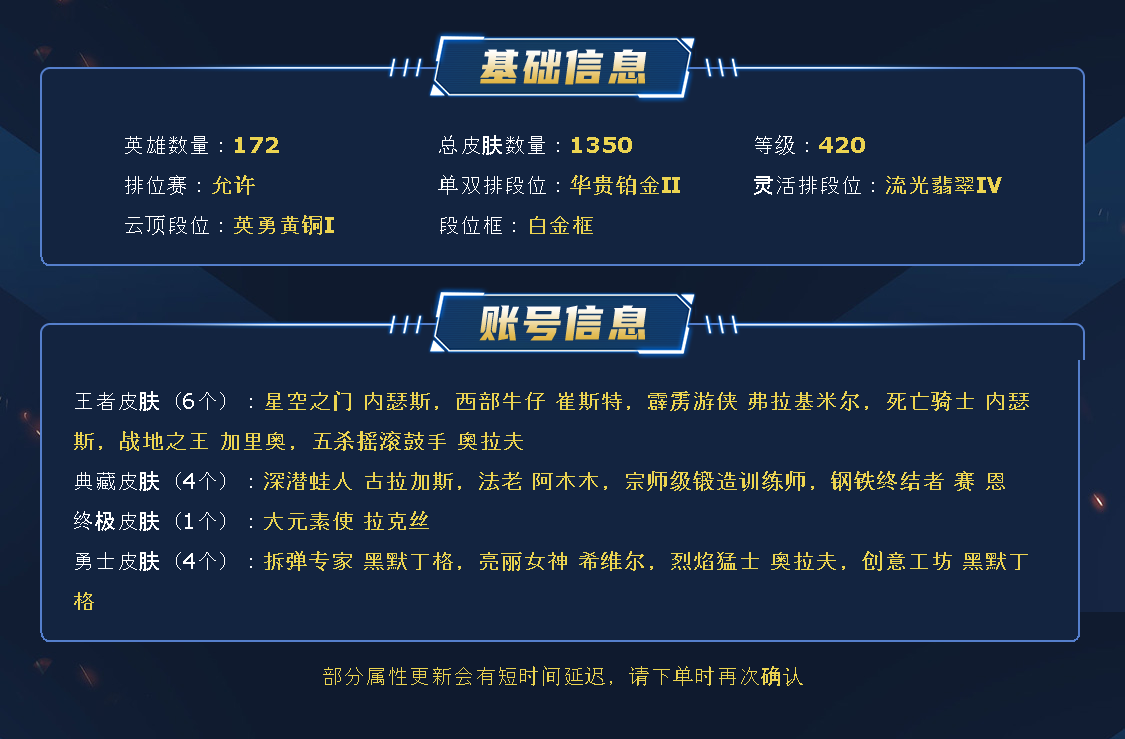 【全英雄可排位730原皮肤192炫彩皮肤】【已开通福星计划】至臻提莫、至臻佐伊、至臻霞、至臻狗熊、至臻凯隐、至臻瑟提、至臻日女、至臻锐雯、至臻皎月、至臻剑魔、至臻妖姬、至臻EZ、至臻亚索、至臻瞎子、灰烬骑士铁男、灰烬骑士派克、摄魂薇恩、海克斯梦魇、海克斯乌鸦、海克斯鳄鱼、海克斯炸弹人、海克斯人马、海克斯波比、海克斯龙龟、海克斯大嘴、黎明使者卡尔玛、暗星大虫子、灵能特工易、鼠年日女、玉剑男刀、玉剑刀妹、司马懿、斩星魔剑、冠军蔷薇妖姬、情人节乌鸦、创星之灵、万圣节小鱼人、战熊骑士、征服者韦鲁斯、养蜂人、黑夜蛮王、虚空执事玛尔扎哈、永恒之森雷克塞、牛年佛耶戈、太空律动格温、灵魂莲华千珏、灵能特工劫、屠龙勇士奥拉夫、屠龙勇士巨魔、屠龙勇士老鼠、战地机甲狗头、古神梦魇、黑暗骑士赵信、五杀摇滚奥拉夫、大元素使、奥德赛炸弹人、冰雪节剑圣、冰雪节老鼠、送披萨的小姐姐、情人节霞、万圣节人马、勇者阿狸、勇者豹女、御星魔矢、暗星锤石、暗星女王拉克丝、暗星尊烬、黑夜奶妈、黑夜亚索、日蚀日女、神王盖伦、神王诺手、天煞劫、屠龙勇士潘森、西部卢锡安、西部寒冰、星守阿狸、星守霞、源计划VN、战斗学院EZ、真实伤害艾克、暗星泽拉斯、黯晶战神、奥德赛金克丝、奥德赛螳螂、奥德赛石头人、奥德赛琴女、黑夜使者厄斐琉斯、柯基库奇、吕布、魔女卡蜜尔、千纸双子、绒毛菲兹、塔里克辉盾、图奇影足、未来战士艾克、未来战士锐雯、未来战士卢锡安、武神、西部诺手、西部人马、小蜜蜂悠米、小蜜蜂大嘴、小蜜蜂玛尔扎哈、小蜜蜂提莫、腥红之月全套、永恒之森小法、源计划金克丝、战斗教授男枪、真实伤害阿卡丽、真实伤害赛娜