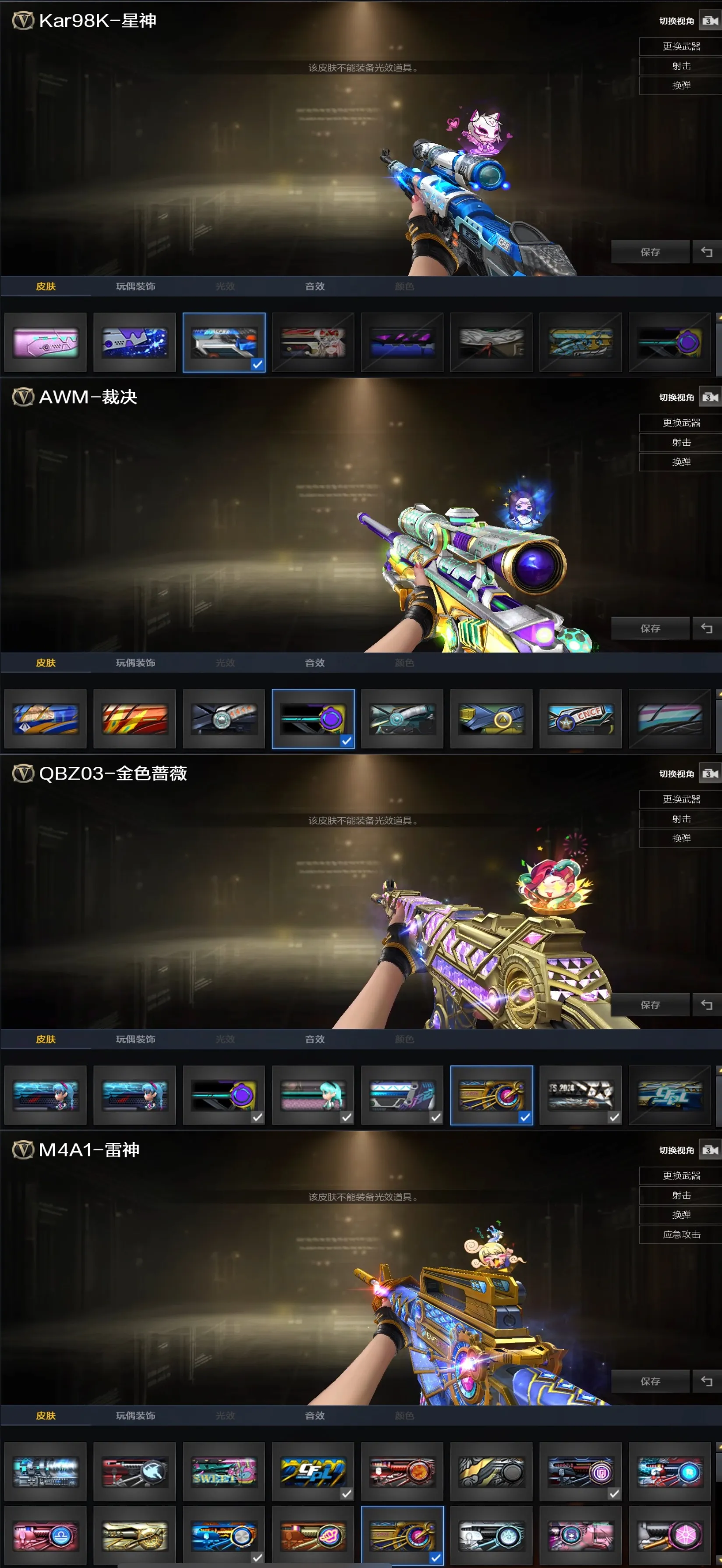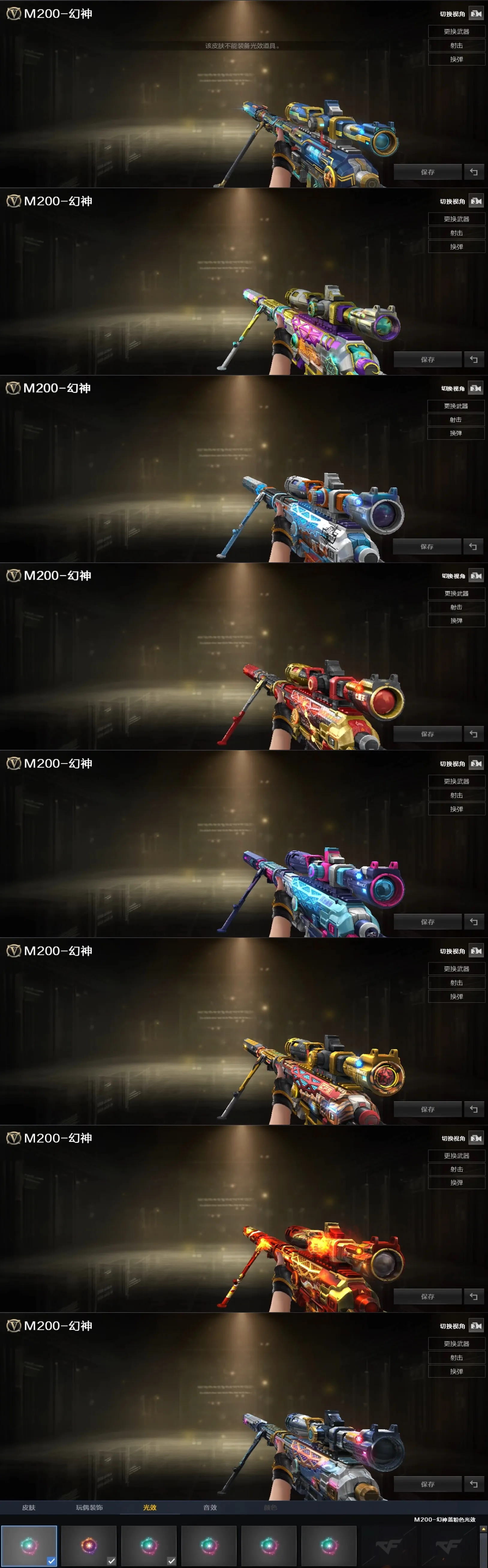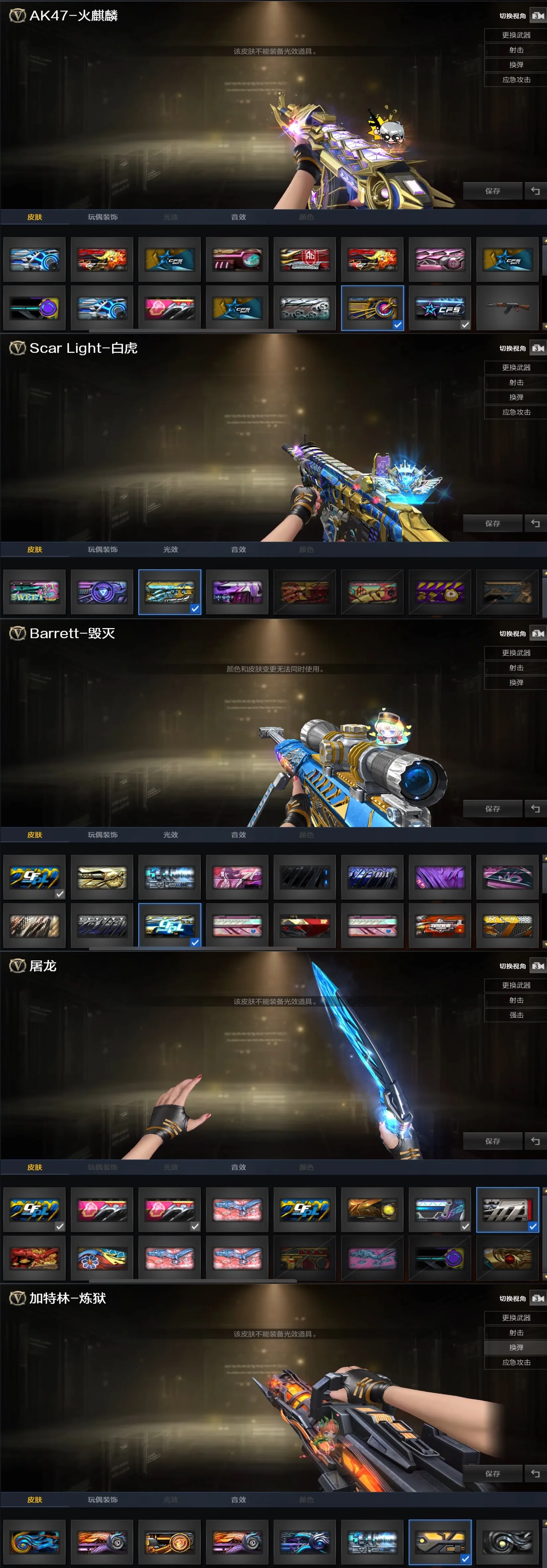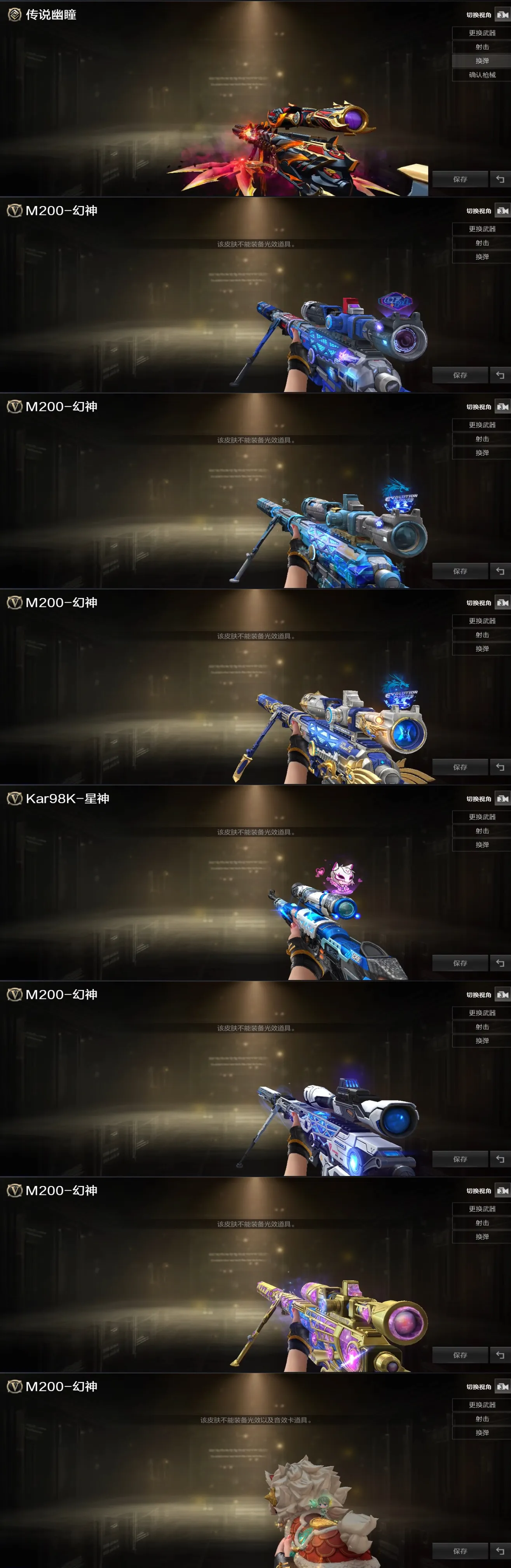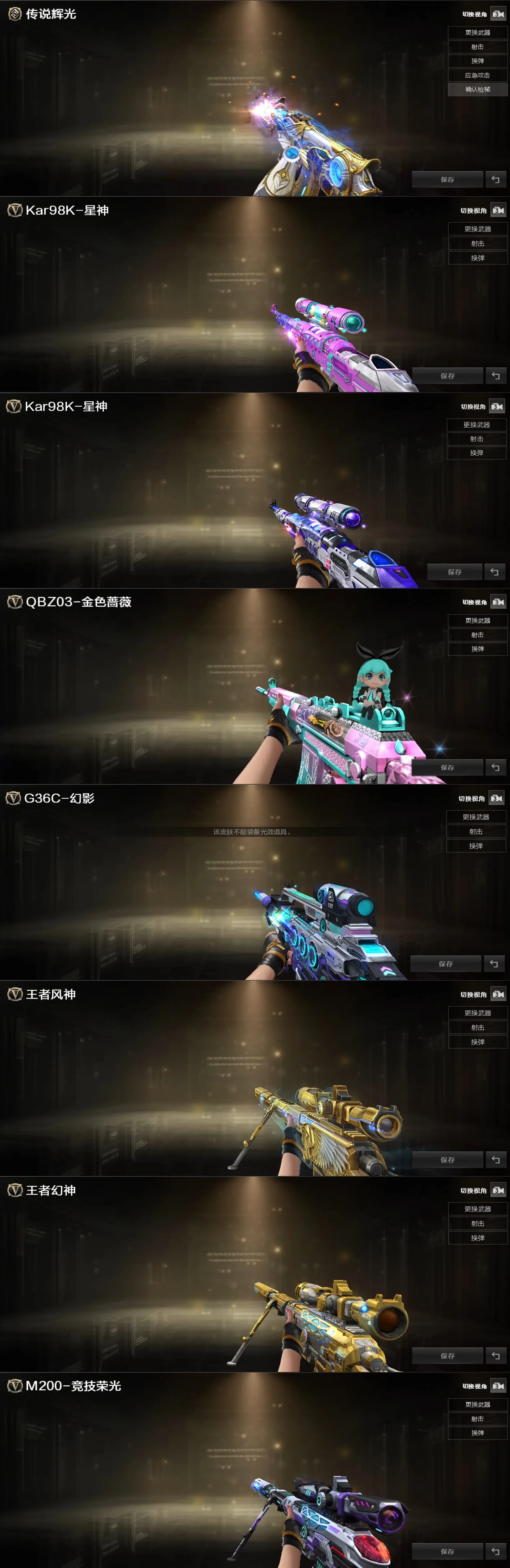 屠龙-炽焰光效/屠龙-流星光效/王者之光金色光效/王者之击金色光效/王者之幻金色光效/王者之心金色光效/王者之锋金色光效/王者之魂金色光效/王者星神原始光效/AN94-超新星蓝色光效/M4A1-死神蓝色光效/M4A1-黑骑士蓝色光效/加特林-炼狱蓝色光效/屠龙蓝色光效/巴雷特-毁灭蓝色光效/王者冰魄-蓝色光效/AK47-无影蓝粉色光效/AK47-火麒麟蓝粉色光效/M200-幻神蓝粉色光效/M4A1-雷神蓝粉色光效/Barrett-极光蓝粉色光效/M200-幻神紫橙光效/Barrett-毁灭紫橙光效/Kar98K-星神紫橙光效/M4A1-雷神紫橙光效/M4A1-黑骑士紫橙光效/加特林-炼狱紫橙光效/Scar Light-白虎紫色光效/王者之势紫色光效/麒麟刺绿色光效/屠龙蓝粉色光效/真龙戒/皇龙戒/御龙戒
