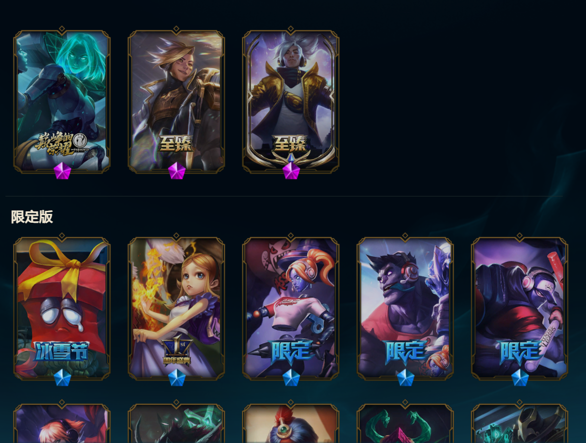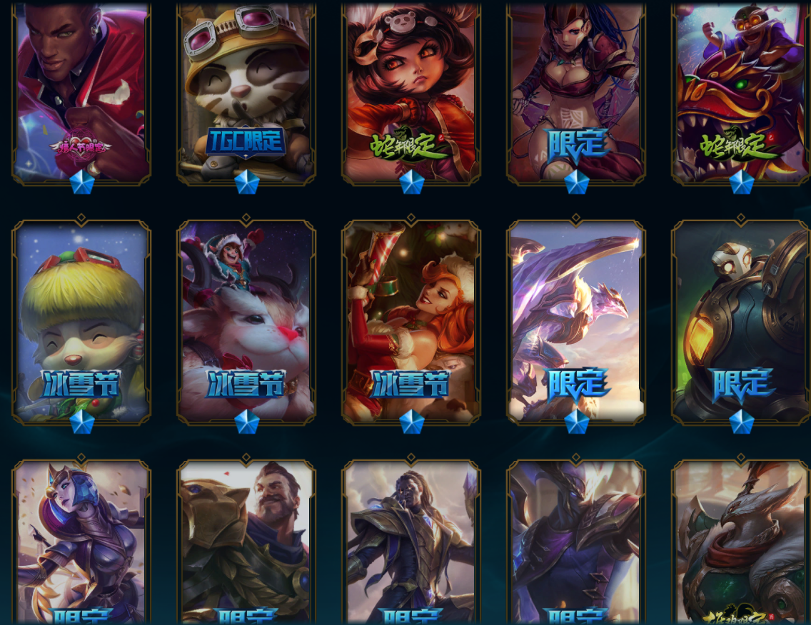 🔥常用皮肤🔥大元素使拉克丝🔥dj娑娜🔥未来战士ez🔥海克斯皇子🔥海克斯炸弹人🔥恐惧新星诺手🔥神凰行者瑞羽凤凰🔥十周年安妮🔥源代码乐芙兰🔥至臻灵能特工ez🔥至臻真实伤害亚索🔥安妮梦游仙境🔥暗杀星发条🔥暗杀星蒙多🔥暗杀星慎🔥暗杀星ez🔥暗影沃里克🔥碧玉之牙蛇女🔥地底世界卡牌🔥定海神针孙悟空🔥fnatic库奇🔥钢铁军团拉克丝🔥广寒仙子嫦娥🔥冠军之矛滑板鞋🔥冠军之刃锐雯2016🔥冠军之隐劫🔥古琴余韵娑娜🔥蓝色忧郁卡牌🔥密林猎手提莫🔥觅心游侠卢锡安🔥蛇年限定安妮🔥胜利凤凰🔥胜利机器人布里茨🔥胜利女神发条🔥胜利枪神男枪🔥胜利枪神卢锡安🔥胜利之剑亚克托斯🔥神龙之翼库奇🔥司马懿仲达🔥skt t1牛头🔥skt t1沙皇🔥skt t1劫🔥skt t1婕拉🔥skt t1滑板鞋🔥skt t1鳄鱼🔥skt t1 李青🔥skt t1薇恩🔥skt t1伊莉丝🔥ssw锤石🔥ssw狮子狗🔥ssw图奇🔥ssw辛吉德🔥替父从军花木兰🔥舞会公主安妮🔥醒狮克格莫🔥野兽猎人德莱文🔥野兽猎人瑟庄妮🔥野兽猎人泰达米尔🔥银龙裁决泰隆🔥泳池派对女枪🔥泳池派对剑姬🔥泳池派对男枪🔥泳池派对皇子🔥泳池派对鳄鱼🔥泳池派对蕾欧娜🔥泳池派对李青🔥泳池派对塔里克🔥勇敢的心诺手🔥永恒之森乐芙兰🔥玉净夜叉凯特琳🔥征服者卡尔玛🔥暗星锤石🔥霸天零式 塞恩🔥霸天异形卡兹克🔥电玩女生娑娜🔥地狱行者孙悟空🔥符文战熊沃利贝尔🔥钢铁军团盖伦🔥黑夜使者亚索🔥灵魂莲华阿狸🔥灵魂莲华锤石🔥律政大亨蒙多🔥偶像歌手阿狸🔥神龙尊者李青🔥神王诺手🔥西部魔影卢锡安🔥星守金克斯🔥星守拉克丝🔥源计划薇恩🔥源计划艾希🔥源计划易🔥至尊魔女莫甘娜🔥暗星卡兹克🔥暗星维鲁斯🔥霸天剑魔🔥霸天巨兽墨菲特🔥苍穹之光薇恩🔥苍穹之光维克兹🔥古墓丽影凯特琳🔥源代码丽桑卓🔥源代码索拉卡🔥源代码亚索🔥源代码菲奥娜🔥源代码卢锡安🔥源代码蕾欧娜🔥源代码卡特🔥源代码劫🔥