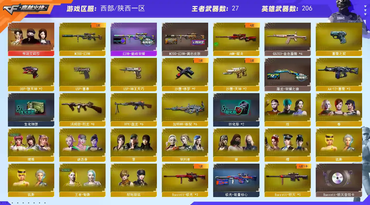 【允许排位】206V四防艾莉莎/白虎星神幻神3皮巅峰荣耀/宠儿/雷暴USP/职业经理/王者幻神-无需换弹6盘6烈