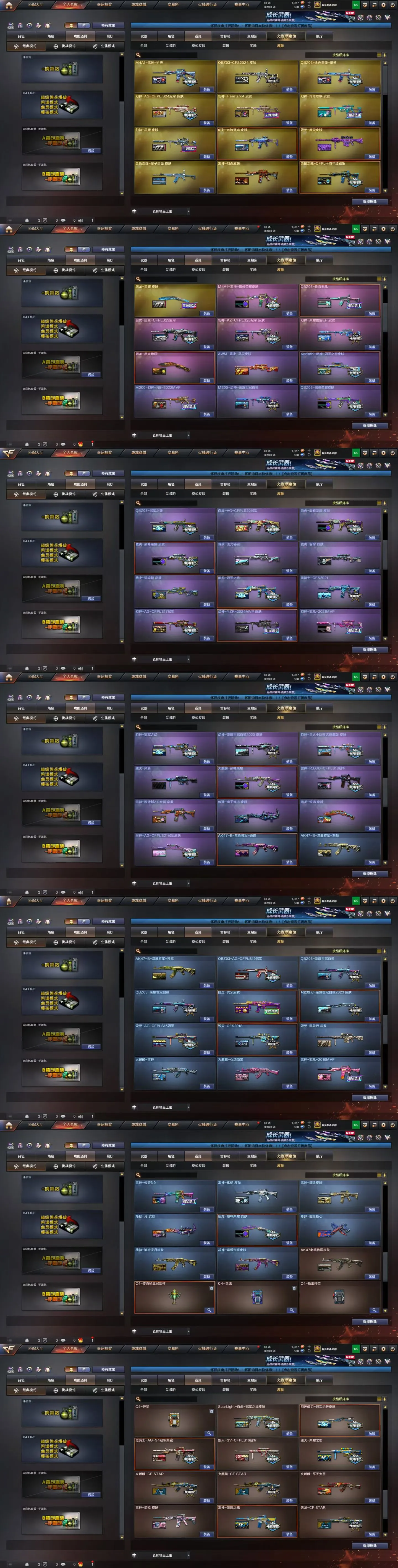 皮肤:幻神-YZK-2024MVP,白虎-虎牙,QBZ03-金色蔷薇-拼搏,幻神-荣耀世冠EP,白虎-白鲨-CFPLS23冠军,裁决巅峰荣耀,幻神-AG-CFPL S24冠军,毁灭魔灵,幻神冠军之幻,星神冠军之星,雷神烈虎,白虎-AG-CFPLS20冠军,毁灭风暴,雷神LGDS18冠军,幻神荣耀世冠白鲨,QBZ03冠军之薇,QBZ03荣耀世冠白鲨,QBZ03AGS19冠军,雷神耀金,雷神巅峰荣耀,QBZ巅峰荣耀,幻神宠儿-2021MVP(幻神宠儿),幻神N9-2022MVP(幻神念旧),雷神-宠儿-2019MVP(雷神宠儿),雷神-传奇N9(雷神N9),毁灭-AG-CFPLS15冠军,白虎冠军之虎,雷神荣耀之魄,屠龙荣耀之锋×3,屠龙星火燎原,白虎巅峰荣耀,幻神AG,幻神星火小队签名臻藏版,QBZ宠儿,QBZCFS2024,毁灭CFS2018,幻神Heartshot(幻神女团),幻神欧欧,QBZ量子蔷薇,幻影破浪逐光,雷神荣耀之魄CFPL十周年臻藏版,炽芒蝶刃冠军炽芒,毁灭SV,幻神星耀,屠龙星耀,裁决流光秘银,幻神荣耀世冠白鲨2023,炽芒蝶刃荣耀世冠白鲨2023,火麒麟巅峰荣耀,毁灭荣耀之怒,屠龙巅峰荣耀,雷神拼搏