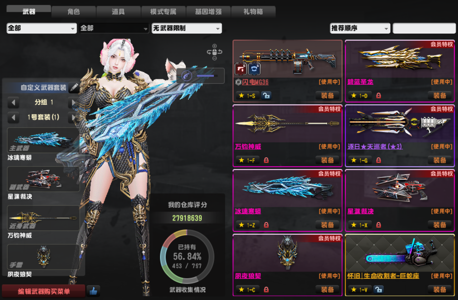 【皇家紫钻+赛季+怀旧】新闪电MG36●冰璃寒蟒※传奇雷神威圣龙☆多强化武●维京全套沙尘改进原石齐全