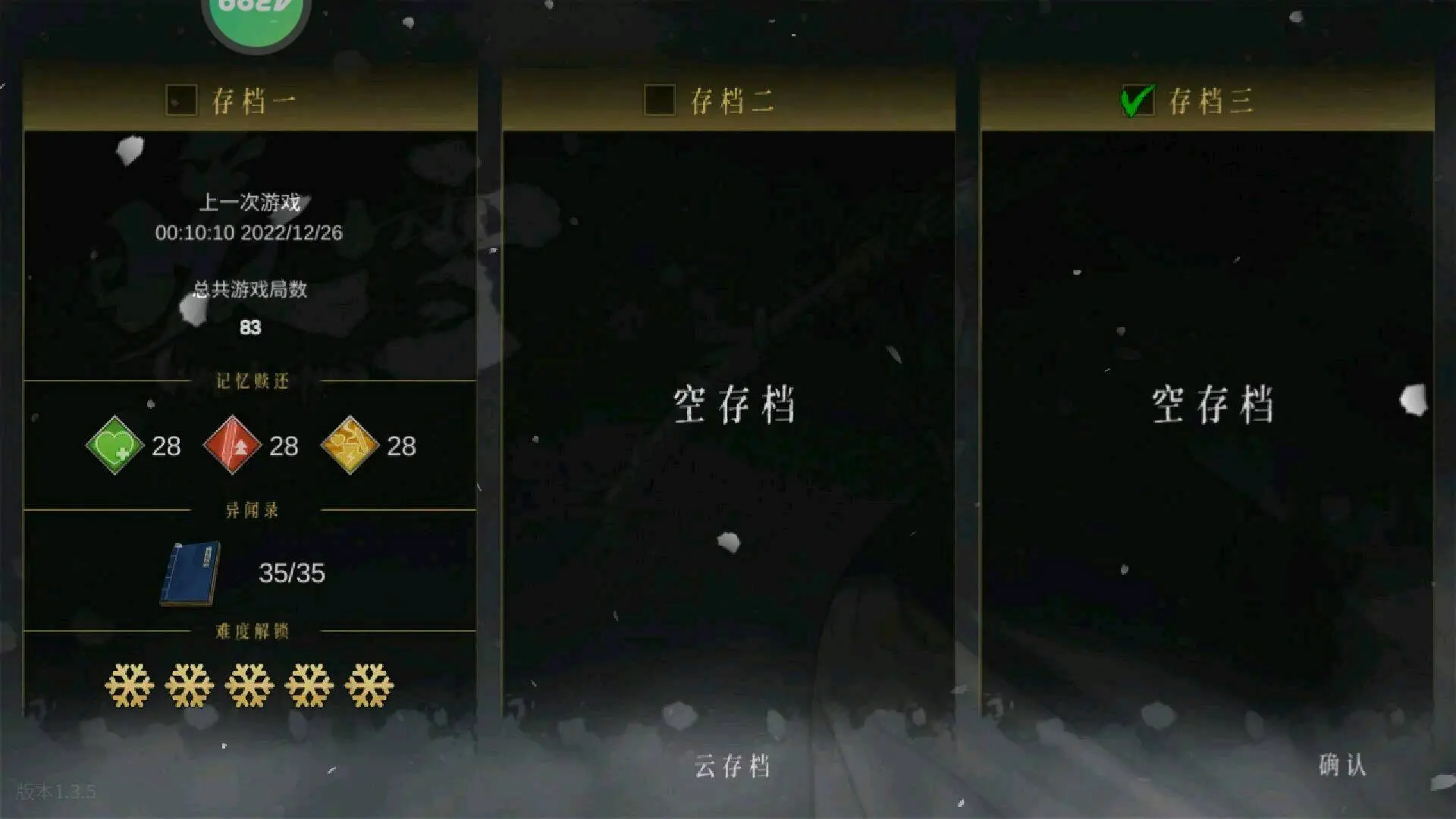 【安卓】 暖雪手游4399版本,完整版解锁,满异闻录,难度全解锁,打开游戏,选择存档,点击云存档,上传后下载即