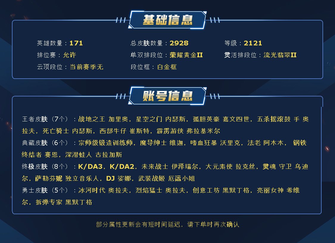 艾欧尼亚果壳✨2930皮丨商城清空丨可排位丨全套冠军皮丨全终极丨106至臻丨甜妹美女号丨玉剑男女刀丨
