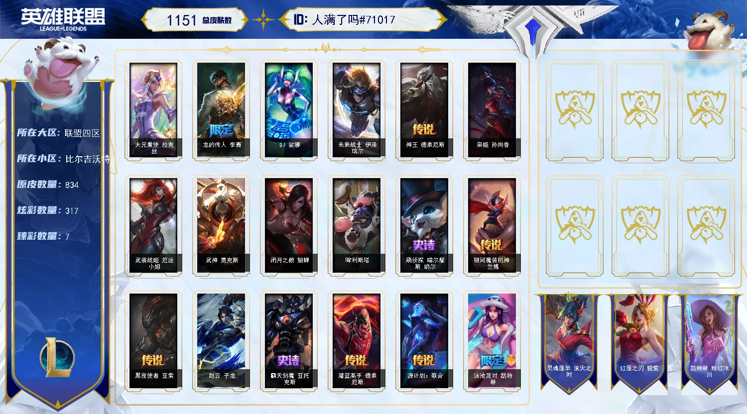 1200皮肤〓龙瞎〓哥特萝莉〓庆典女皇〓鸡里奥套〓限定150