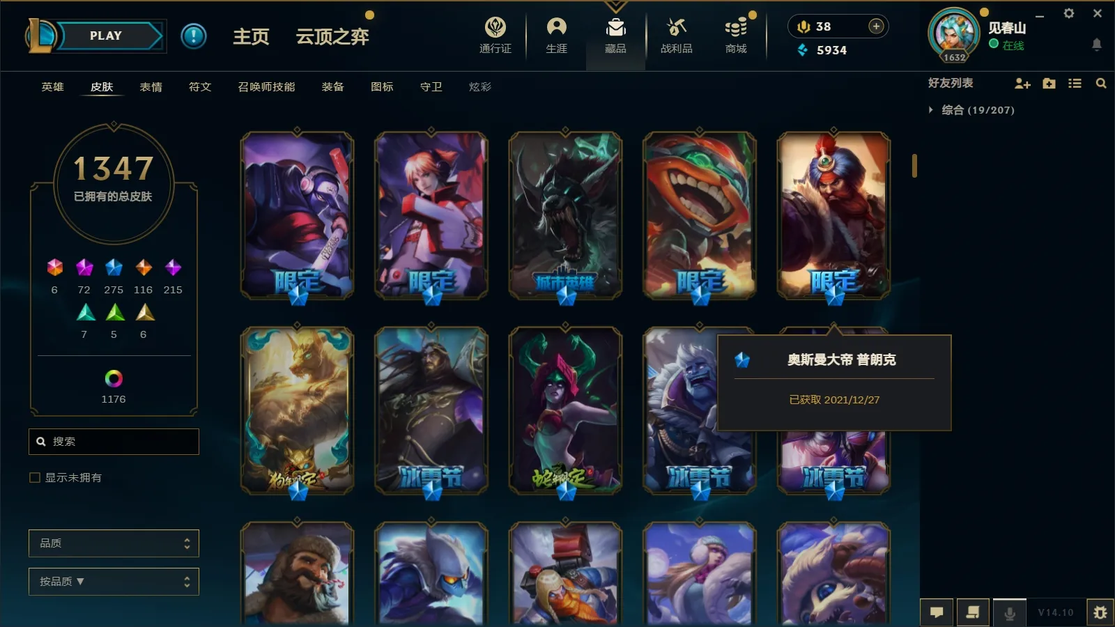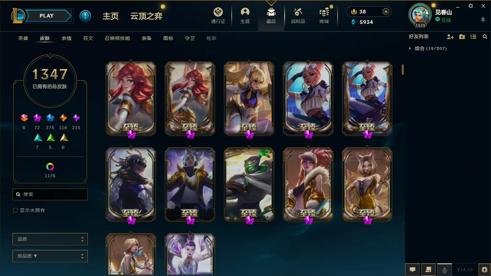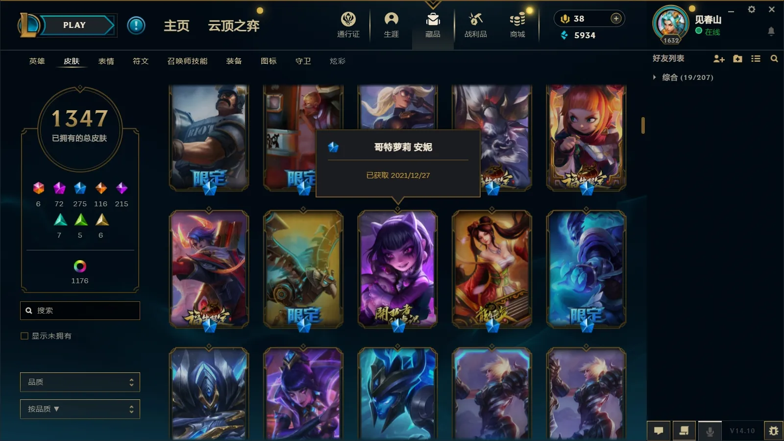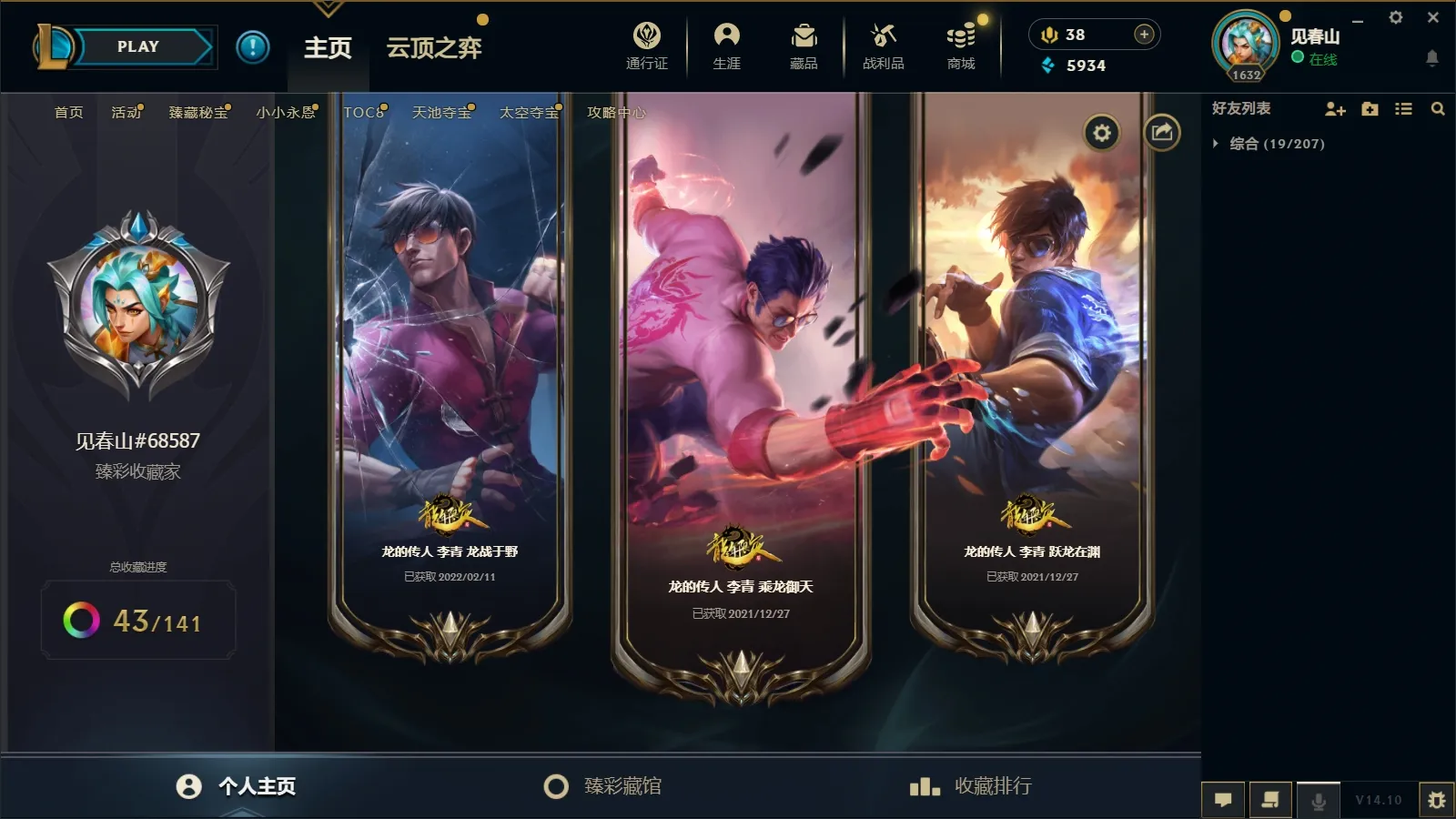 - 云顶段位: 荣耀黄金Ⅰ