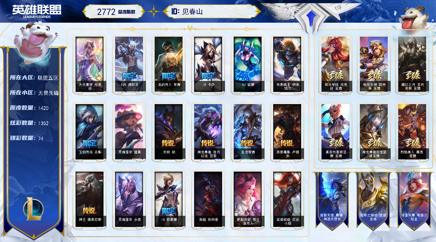 2800皮肤〓85至臻海克斯〓四色龙瞎〓斩星哥特〓玉剑男女刀〓王国机神全套〓海之歌全套〓EDG全套