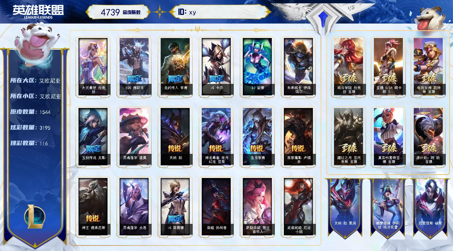 4700p全皮肤妹子号全炫彩*dwg全*1300❤别*商城清空新绿龙虾全海克斯至臻小小多可排位