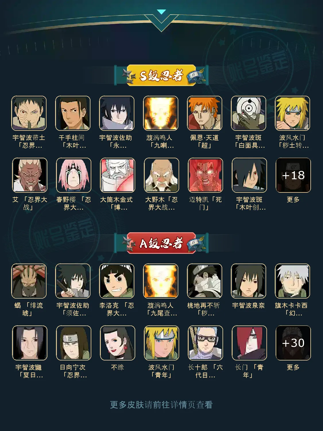 战力:1183W+;S忍31个;A忍32个,通灵兽20个,S忍:大蛇丸九喇嘛鸣人永恒万花筒佐助忍战樱普通自来也死门凯波风水门秽土水门秽土猿飞豪杰自来也秽土扉间千手柱间木叶创立柱间秽土柱间宇智波斑秽土斑木叶创立斑须佐鼬秽土鼬白面具忍战带土罗砂