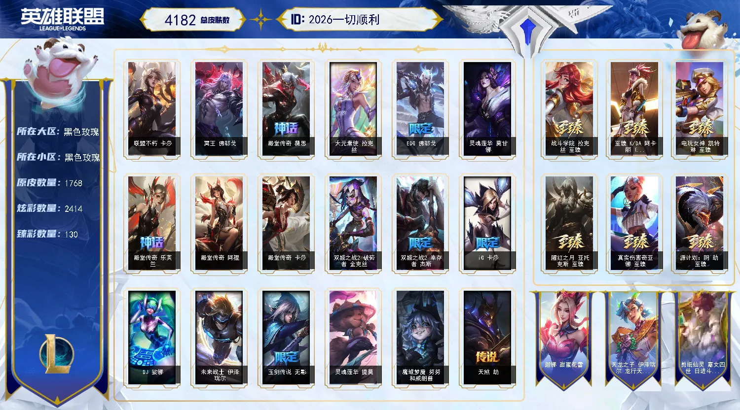 三档卡莎🌟4000皮140神话🌟圣堂佛耶戈 金克丝🌟莲花套🌟冠军全套🌟冰原女警🌟