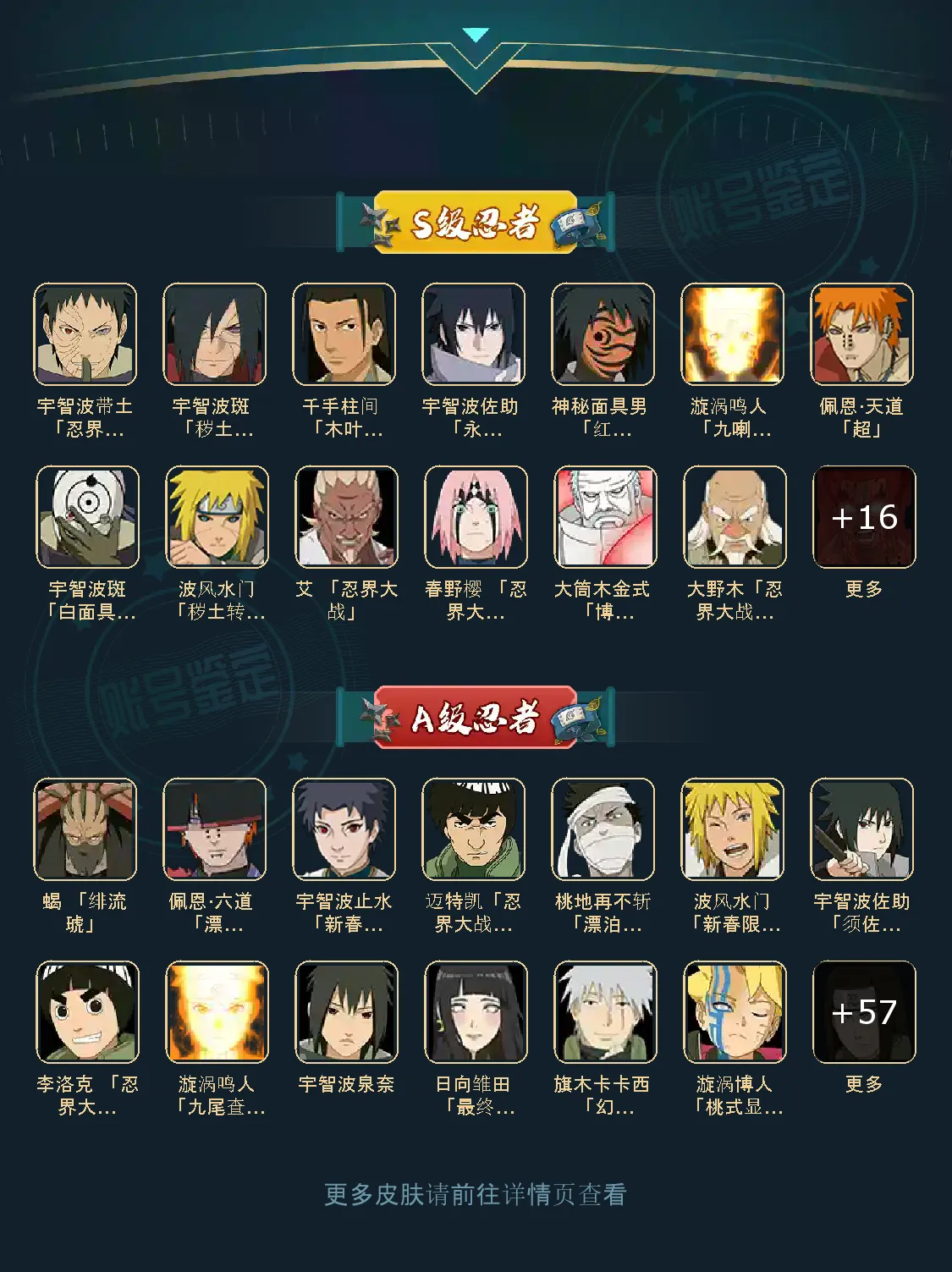 【安卓】 29S 60A 大蛇丸九喇嘛鸣人永恒万花筒佐助忍战樱普通自来也百豪纲手死门凯