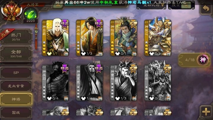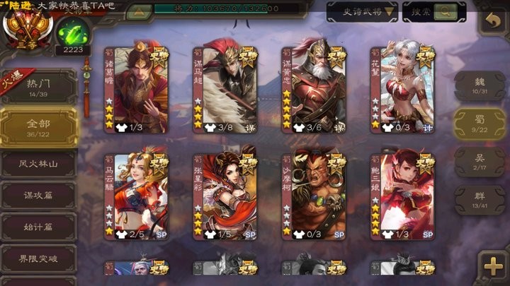 【全平台】 神张辽,神陆逊,神吕蒙,神周瑜 谋夏侯渊,谋徐晃,界钟会,界曹植,曹昂,戏志才 甘夫人,谋孟获