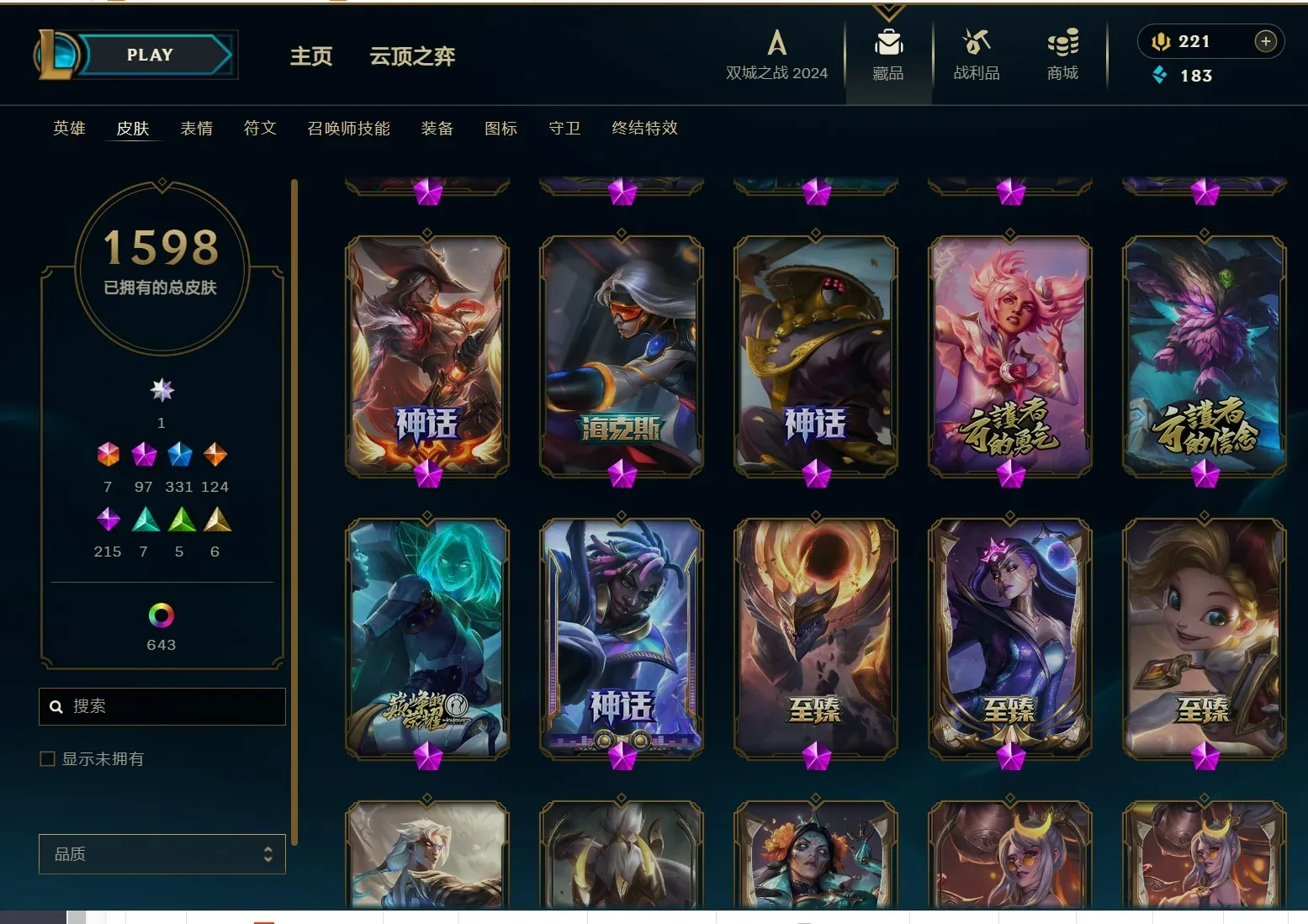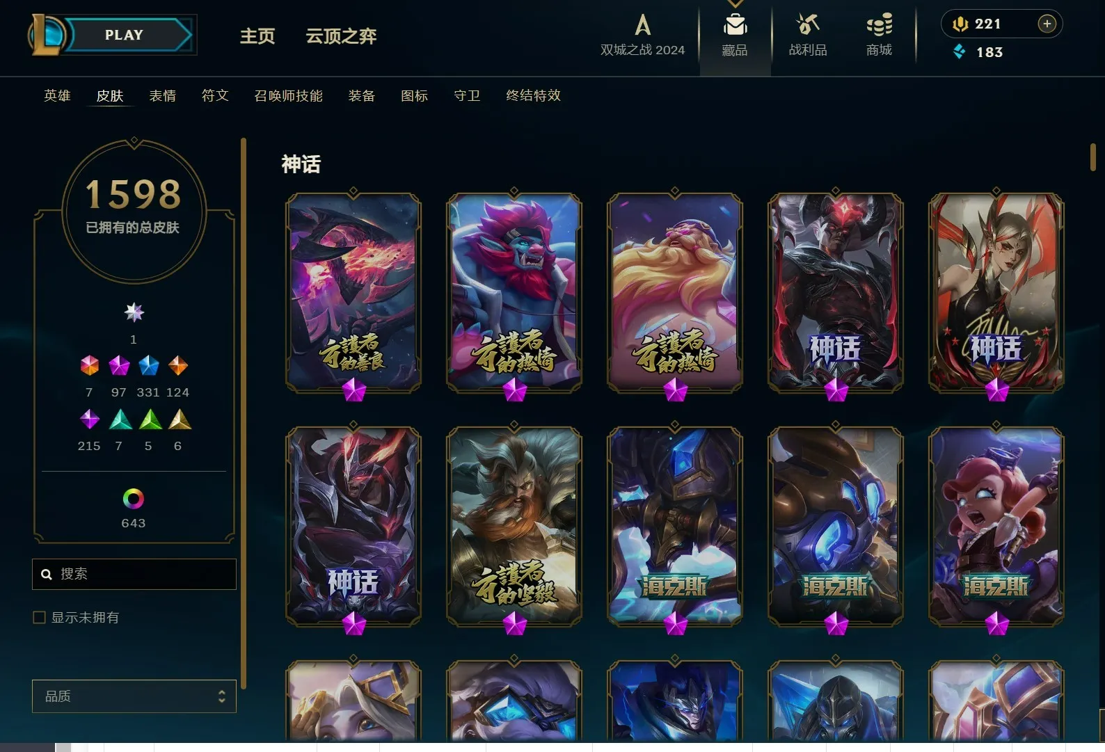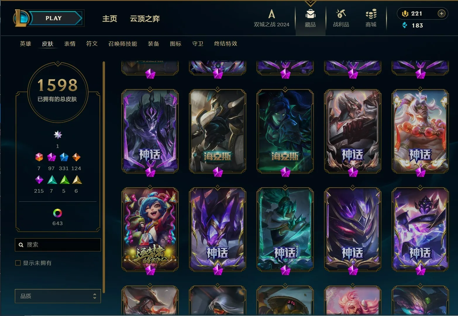 - 神话皮肤数量: 97