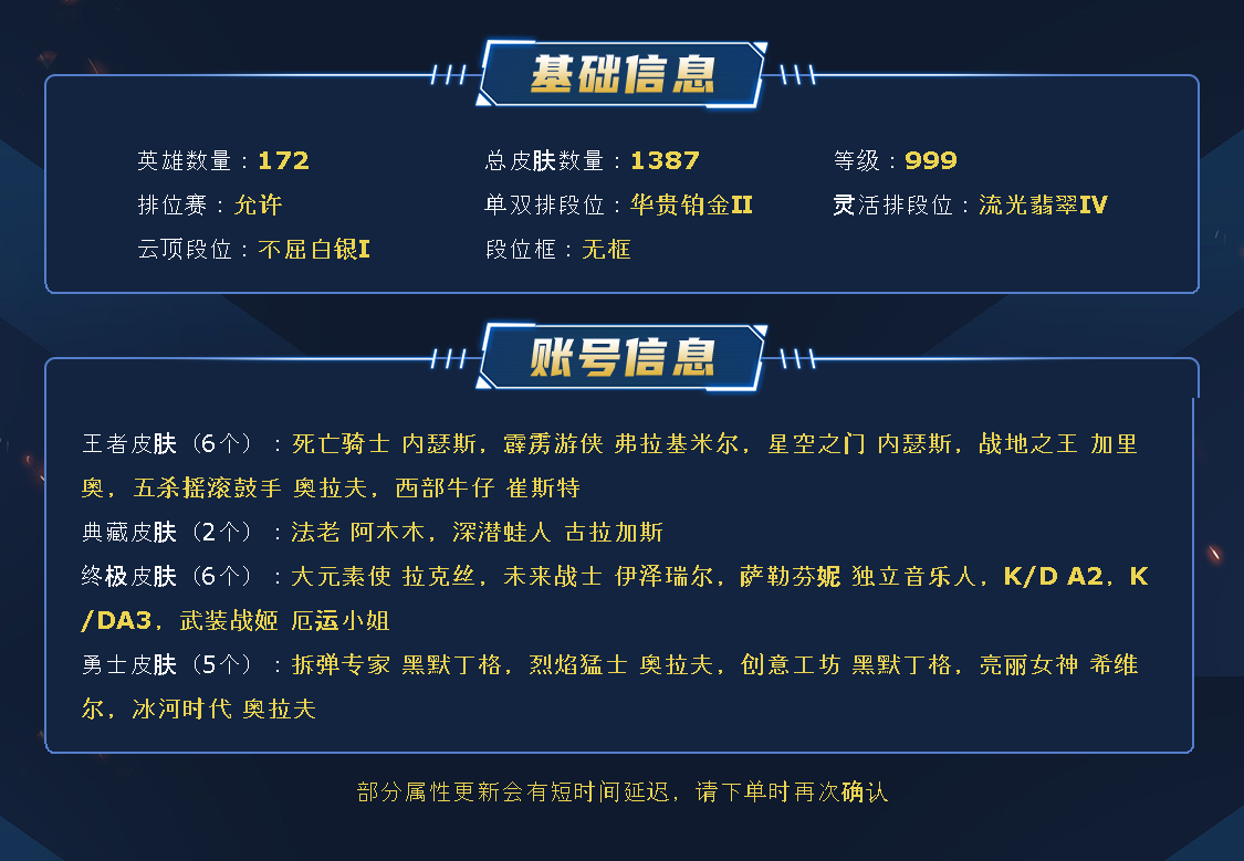 ~~喜欢记得收藏~~可排位~~1200皮全英雄丨763原皮363炫彩丨90神话/至臻/海克斯丨IG套丨鼠年套丨电玩套丨斩星剑圣丨幻灵女枪丨泳池女警丨替父从军丨甜心琴女丨玉剑剑姬丨KDA卡莎丨EDG悠米丨羊年金克斯丨福牛厄斐琉斯丨星守佐伊伊泽丨青花瓷冰女伊泽丨灵魂莲华狐狸锤石瑞文~~租之前尽量查一下游戏ID,确保段位是您需要的,避免浪费您的时间~~请勿挂机逃跑故意送人头,谢谢合作,谢谢~~