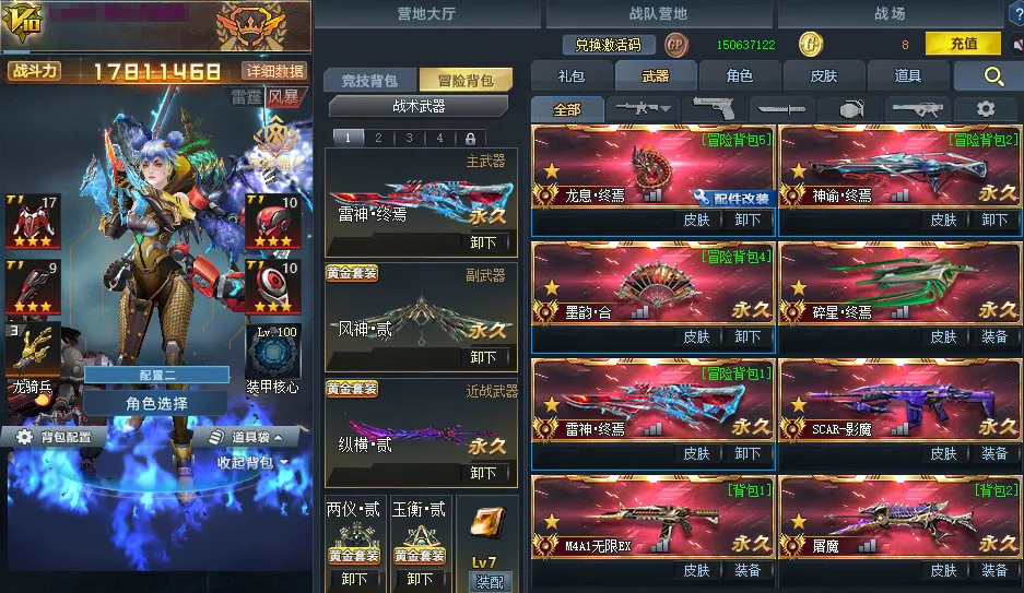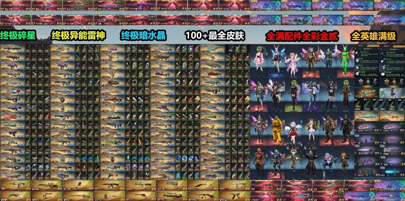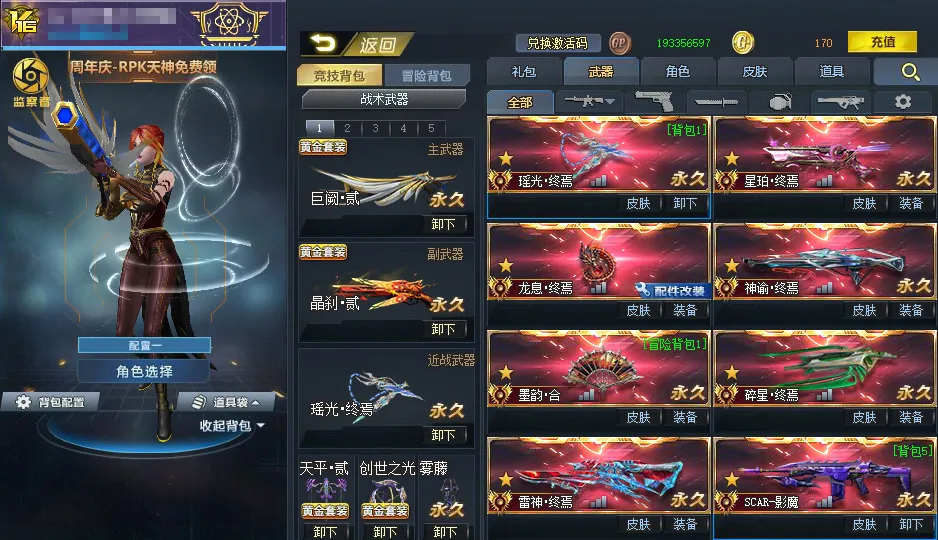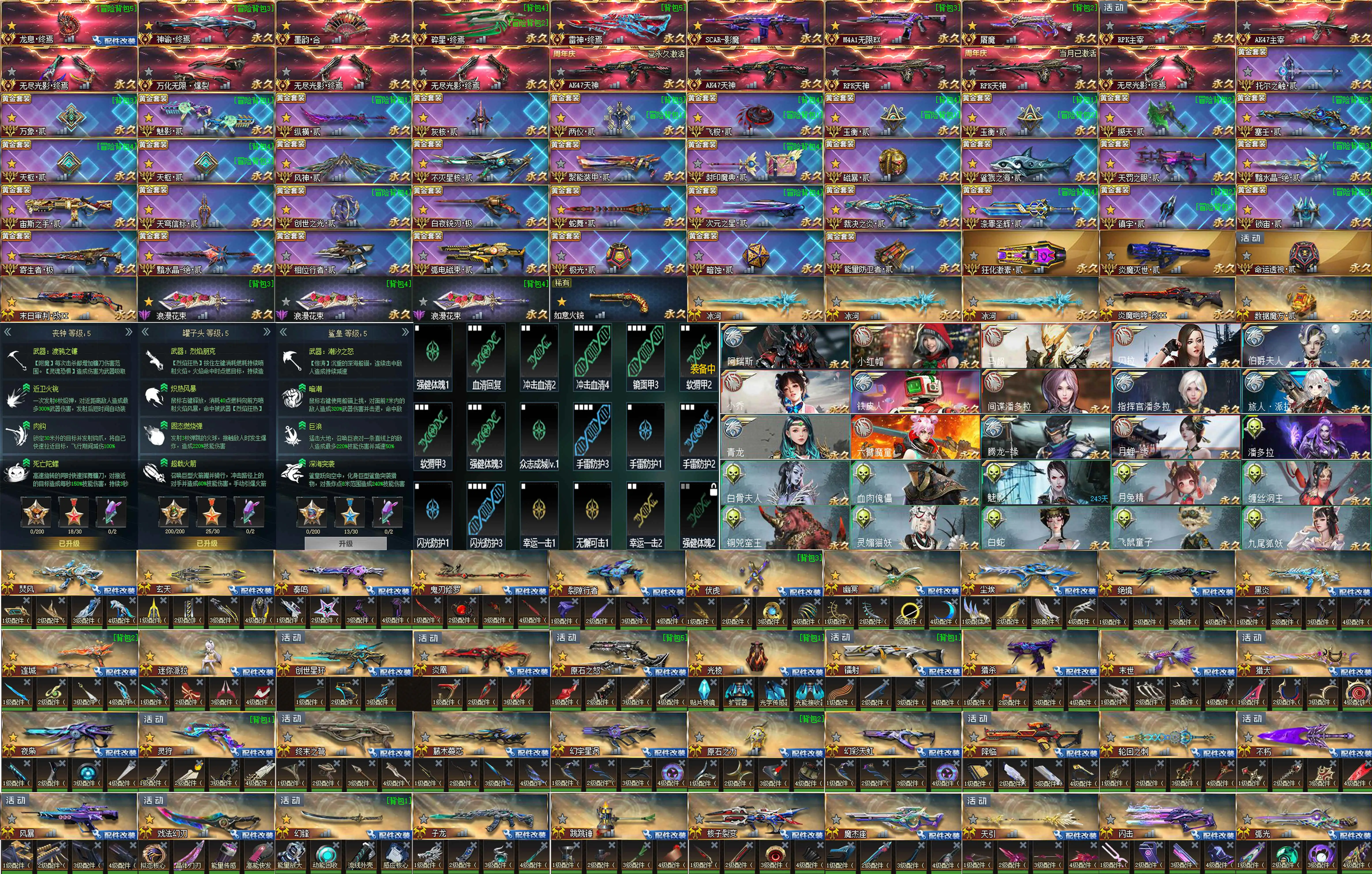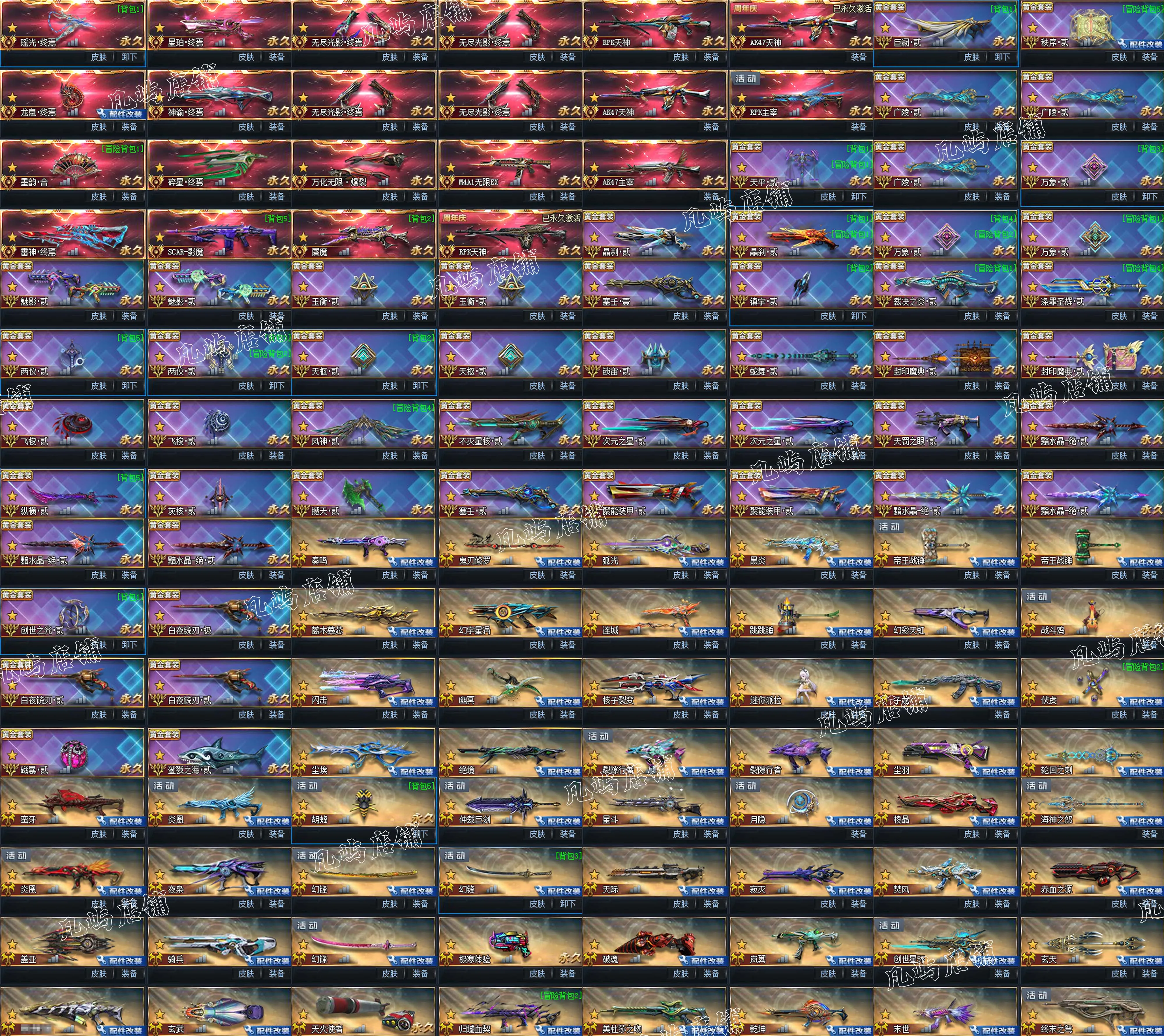 传说武器:万化主宰◆星珀终焉◆RPK主宰◆龙息·终焉◆神谕·终焉◆AK47主宰◆墨韵·合◆碎星·终焉◆雷神·终焉◆SCAR-影魔◆无尽光影·终焉◆M4A1无限EX◆屠魔◆AK47天神◆