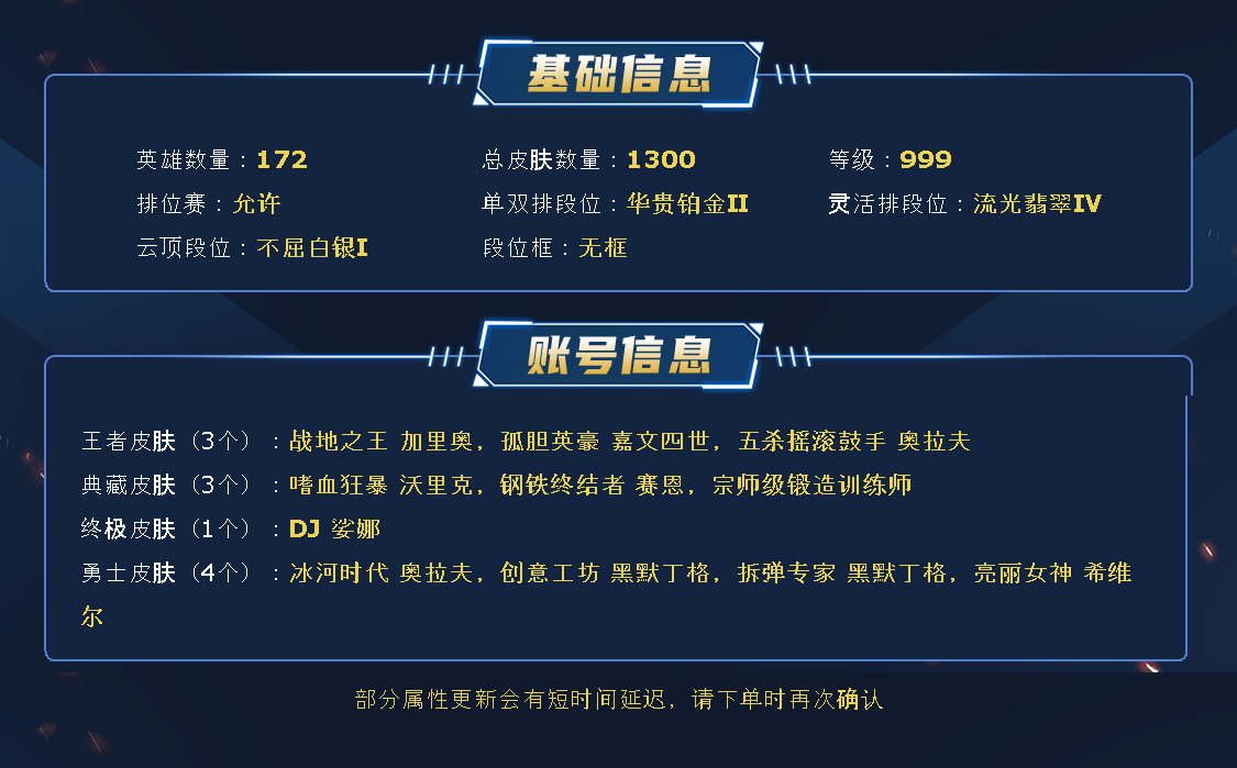 ~~喜欢记得收藏~~可排位~~1300皮全英雄丨90神话/至臻/海克斯丨EDG套丨KDA套丨觅心悠米丨嫦娥皎月丨替父从军丨鼠年武器丨哨兵薇恩丨青花瓷伊泽丨羊年金克斯丨神凰行者霞丨福牛厄斐琉斯丨咖啡甜心格温丨星守卡莎伊泽丨泳池女警佐伊丨至高天武器奎桑提丨电玩卡莎瑞文人马丨幽梦玫瑰男刀蜘蛛丨神龙尊者李青卡莎丨IG卡莎妖姬卡密尔丨幻灵女枪瑞文金克斯丨玉剑男刀女刀剑姬剑圣丨灵魂莲华永恩莉莉娅厄斐琉斯~~租之前尽量查一下游戏ID,确保段位是您需要的,避免浪费您的时间~~请勿挂机逃跑故意送人头,谢谢合作,谢谢~~