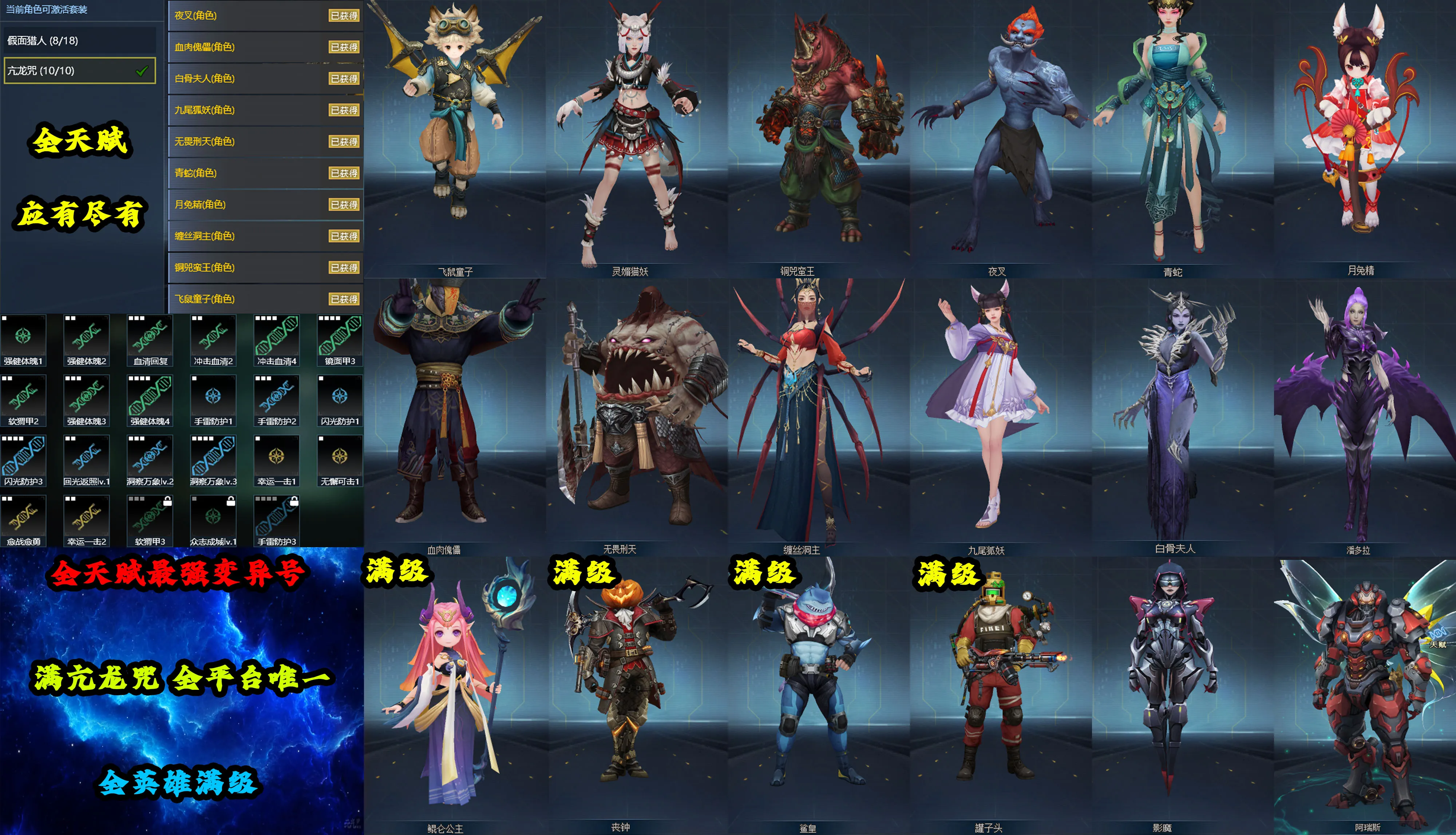 英雄角色:满鲲仑公主◆满丧钟◆满鲨皇◆满罐子头◆影魔◆