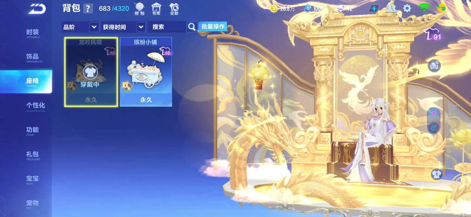 座椅:龙吟凤啸、缤纷小铺、幽梦伊甸座椅、
