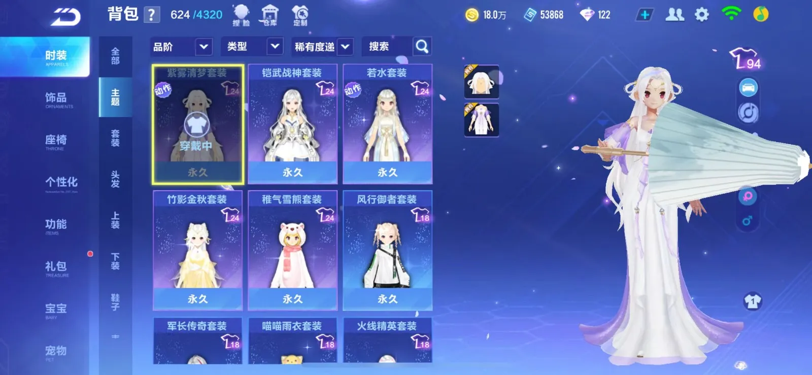 女大衣柜女衣柜:海浪微崎全套/紫雾清梦套装/铠武战神套装/竹影金秋套装/若水套装/朋克幻想套装/古典佳人套装/碧海瑶姬套装女/
