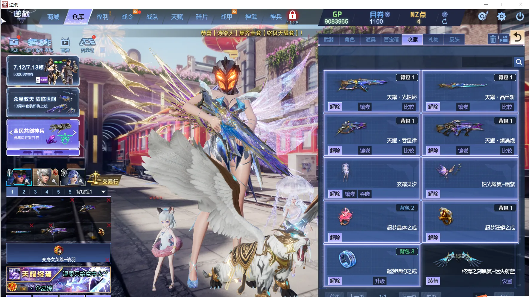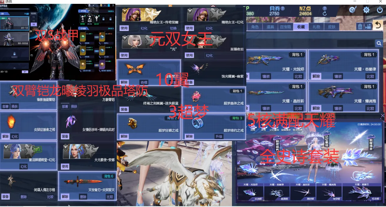 25.7.8新增:女王觉醒,英雄臂铠,5核天耀满配,烛光耀翼-幽紫,晶焰之翼,玄耀灵汐