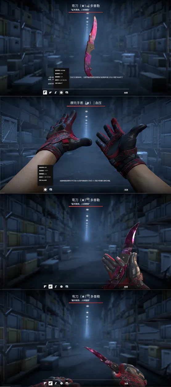 【完美段位:B+:1601-1750】5e授信完美老兵红色系套装丶崭新多普勒弯刀伪粉宝石丶略磨血压手套丶主战小皮音乐盒