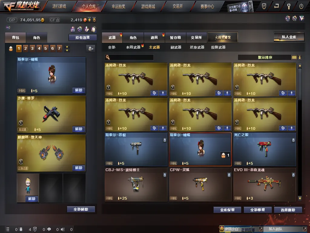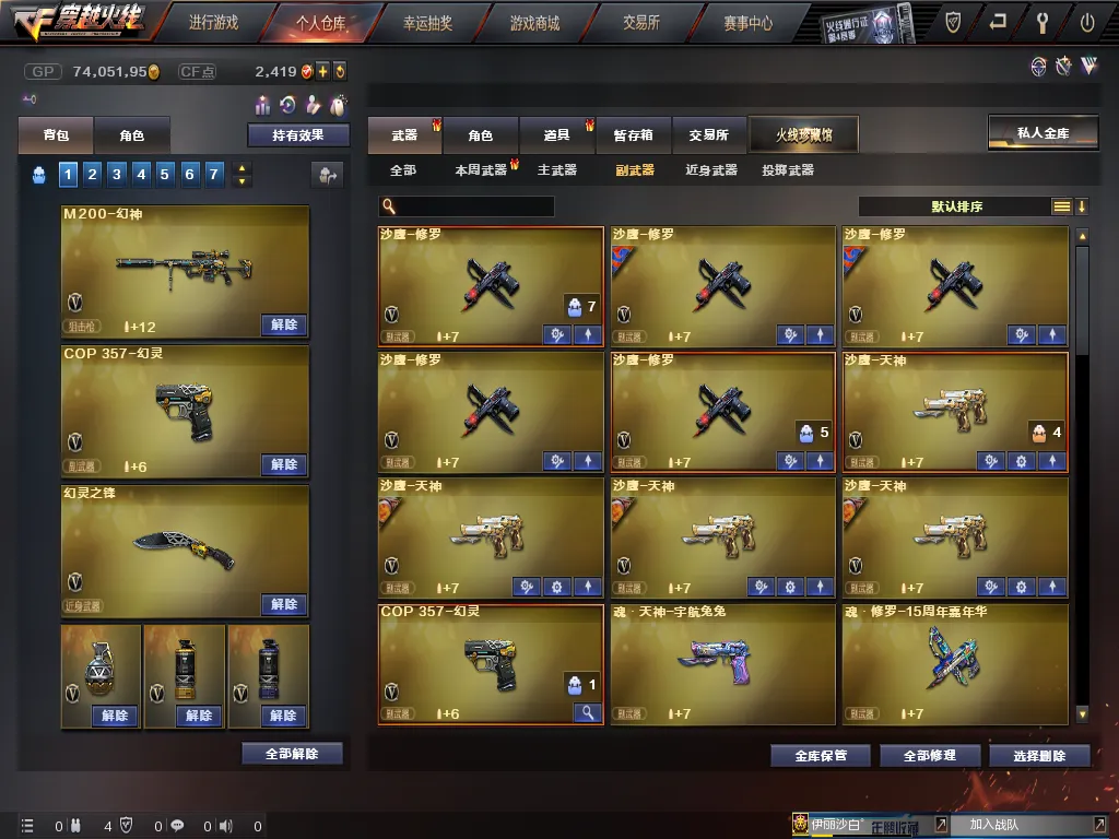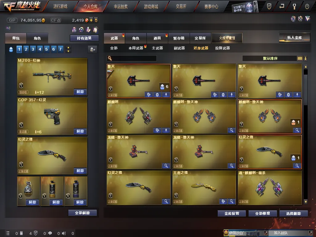 英雄武器:擎天;AK47-B-身先士卒;高爆手雷-堕天神;Barrett-暗月传说;烟雾弹-堕天神;AK47-B-常胜将军;AK47-B-战士;麒麟刺-堕天神;龙啸-堕天神;高爆手雷-幻灵;烟雾弹-幻灵;沙鹰-天神;加特林-炼狱;AK47-火麒麟;闪光弹-堕天神;闪光弹-幻灵;AK47-黑鲨;M4A1-黑龙;AN94-超新星;M200-幻神;沙鹰-修罗;屠龙;Barrett-极光;M4A1-龙血;无影-神兵利器;AK-47-猩红传说;汤姆逊-烈龙;AK47-无影;Barrett-毁灭;Scar Light-白虎;麒麟刺;M4A1-雷神;龙啸;M4A1-黑骑士;M4A1-玫瑰精灵;幻灵之锋;AK12-天启;COP 357-幻灵;AK47-B-战神;RPK-盘龙
