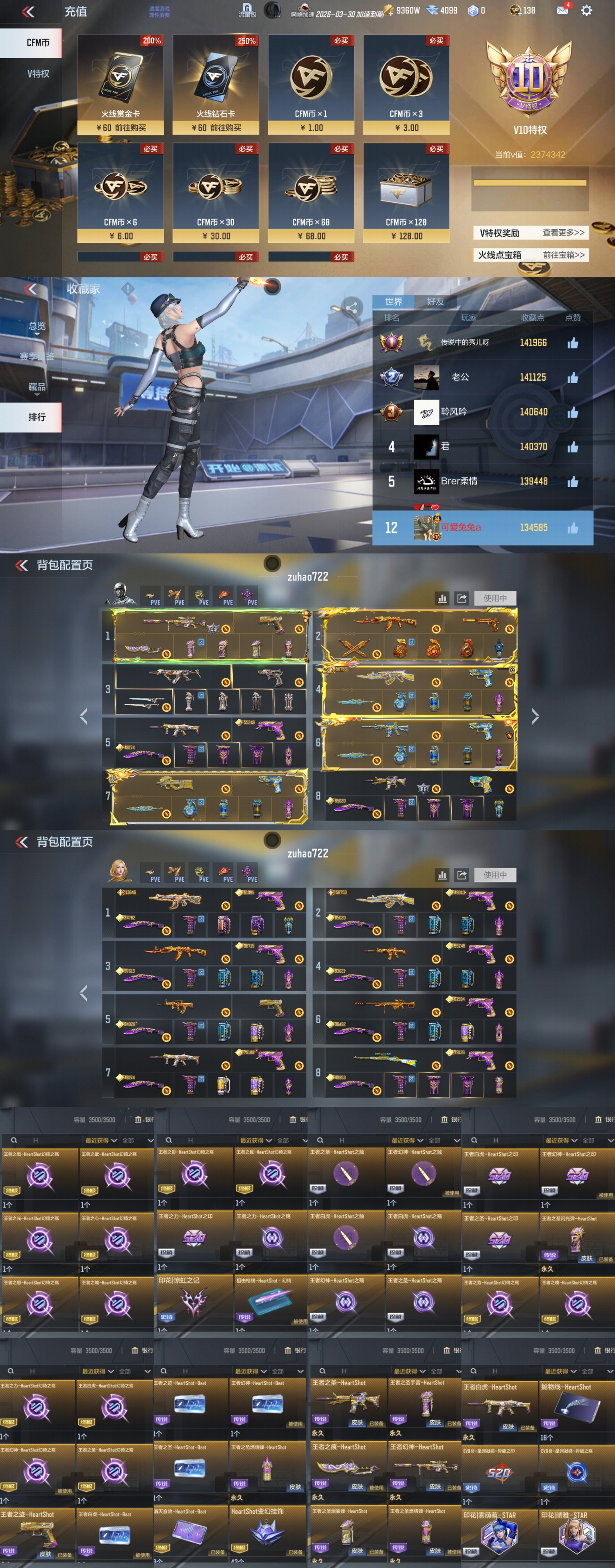 游戏里里外外充值差不多五十万左右!