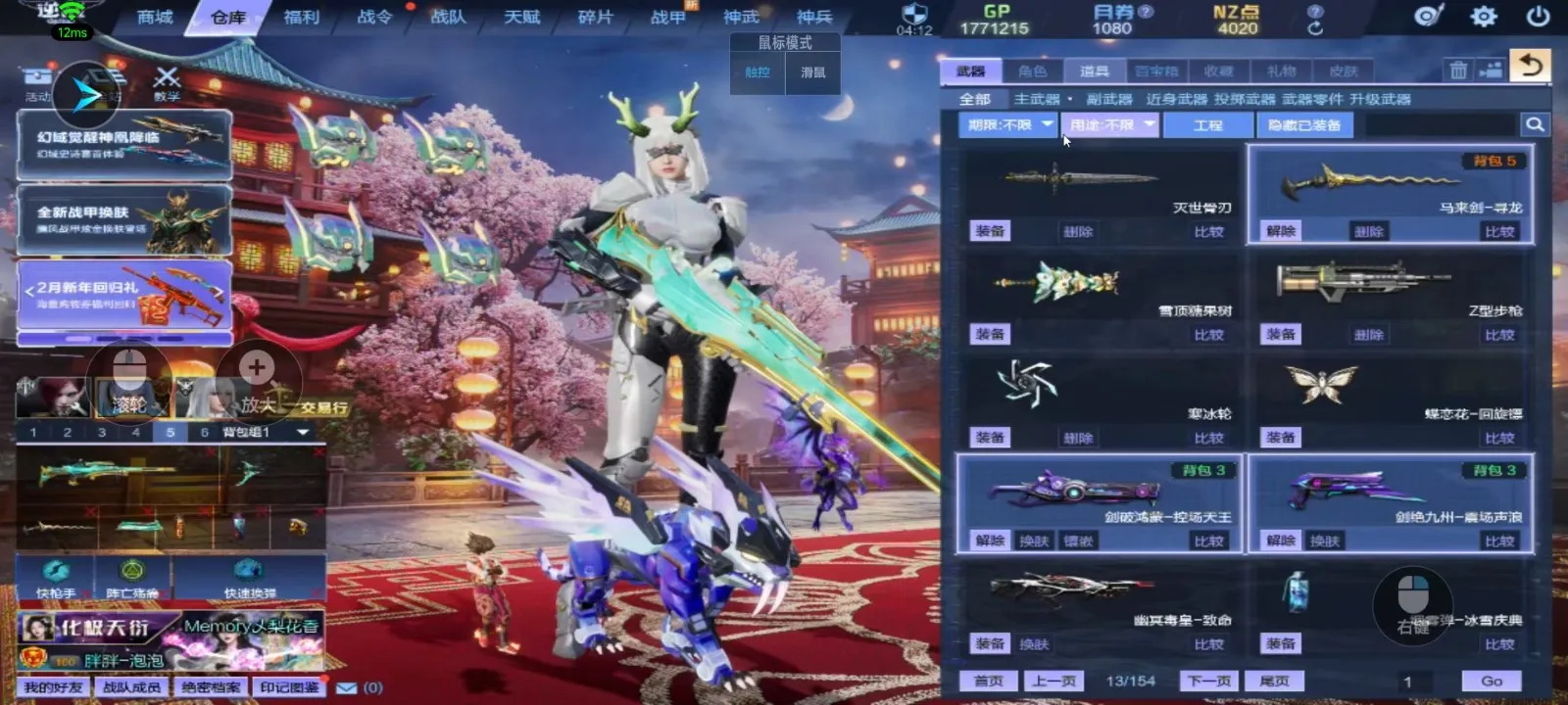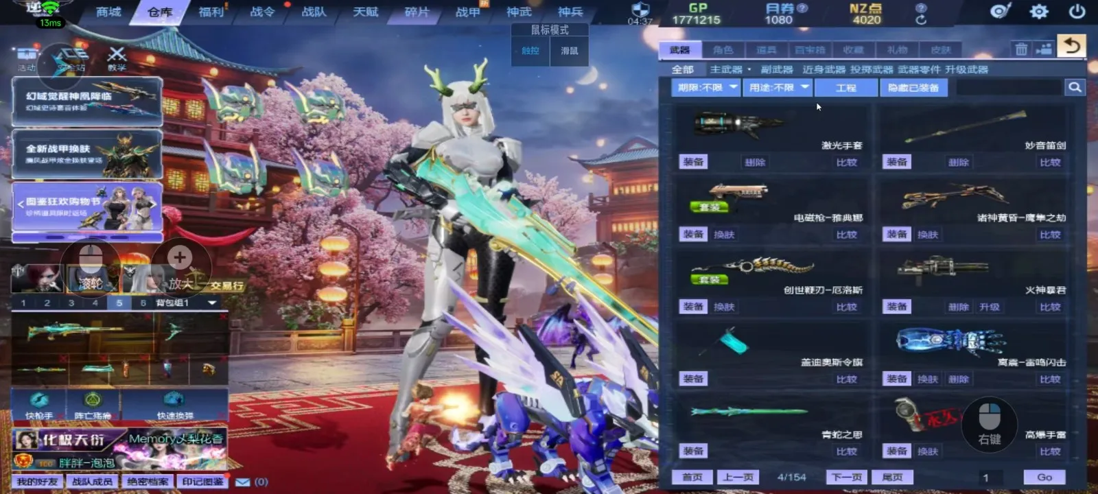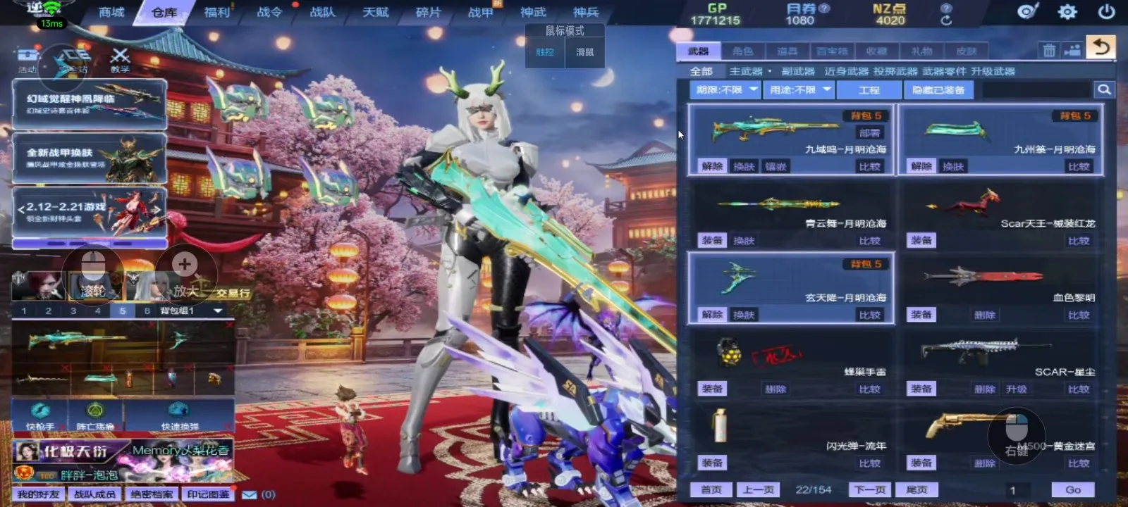神域套10+10,天耀套带核心全装、山海9+9、天帝神凰套六核、幻域套、天启七神武(波塞冬皮肤)、创世套、488武器、4688戒指、红衣、赤龙头盔、六道玄霄破天、新翅膀、新幻化角色、各种僚机和无人机,精绝女王觉醒,锋影强能臂铠,双子,白浪头盔,