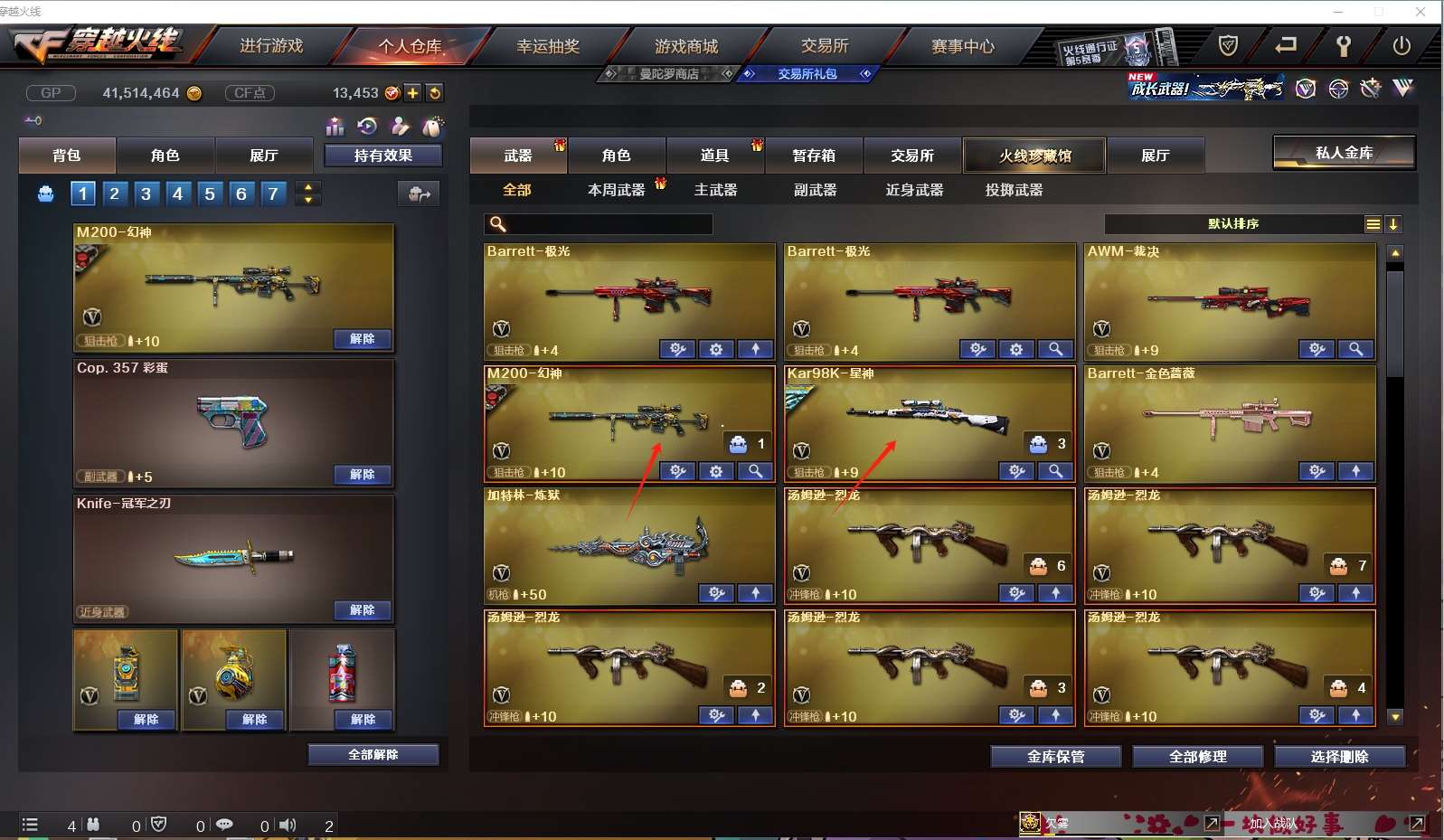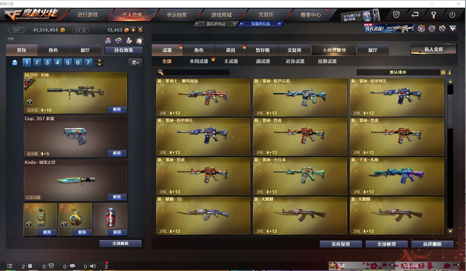 【m200幻神+音效卡+n9mvp+黄忠】 【98k星神+冠军之星】 【qbz金色蔷薇+冠军之薇】 【白虎】 【冠军之特】 【冠军之刃】 【小人呛 迷你宝贝】 【火麒麟】 【黑龙】 【雷神+音效卡+荣耀之魄】 【黑骑士+音效卡+白马银呛】 【毁灭+ag15冠军+冠军之怒】 【极光】 【裁决】 【炼狱 烈龙*6】 【黑武士 天启 超新星 黑鲨 海王】 【修罗+冠军之魂 天神 屠龙+荣耀之锋 擎天 龙啸 麒麟刺 王者之击 】 【四防角色 王者葵貂蝉】 【角色 葵 审判者 王者葵惊若翩鸿 樱 ag炫彩背包 炫彩背包 虎牙炫彩背包