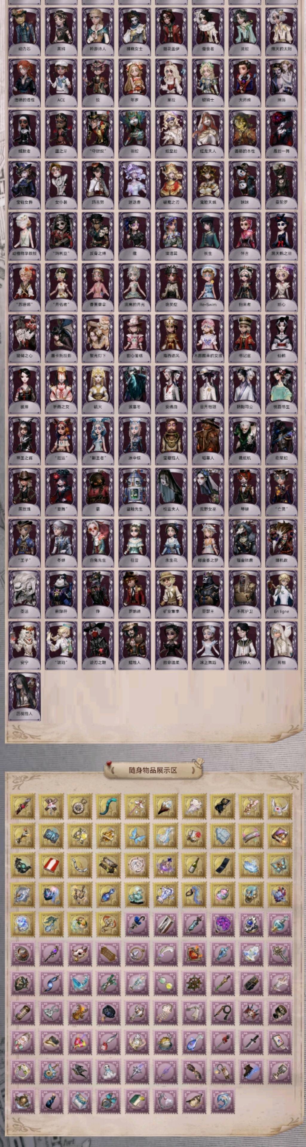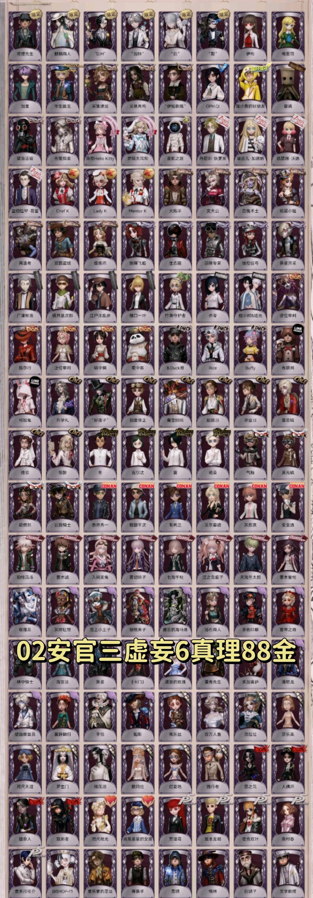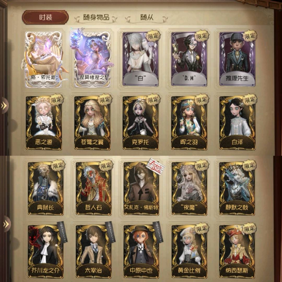恶之源/晖之羽/克罗托/苍鹭之翼/白泽/猎物的印记/采风的仙灵/惊鸿/永恒/赤松枫/华生小姐/菖蒲/心锁/试运者/司药/静默之戟/checkmate/夜魔/伊莎贝拉/典狱长/扎克/哲人石/黄金比例/纳西瑟斯/怪盗基德/日向创/温泉煮酒/逃罪之人/速滑种子