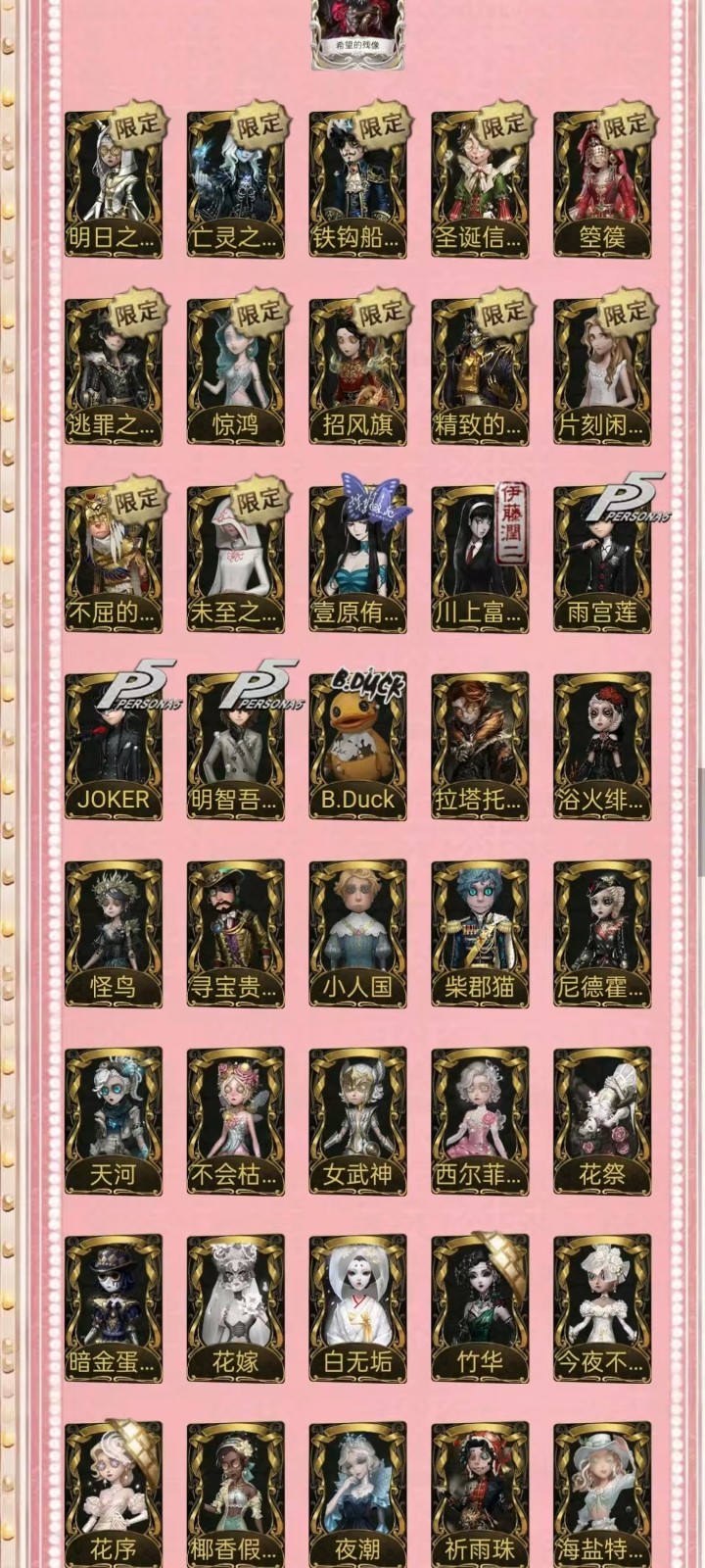 开服号,有山庄共享,历7有抖音头像框,福尔摩斯满配,多限定紫和限定紫挂,多金多紫 租号必看,开挂必报警 恶意毁号必报警 报警报警报警报警报警报警报警报警报警报警报警报警报警报警!!!! 1-挂机封号必报警处理 挂机封号损失 查ip 报警处理 禁止使用外挂,此帐号非账号问题不可撤单! 2-官方账号密码直接登陆,禁止游戏内刷喇叭说卖号骗人,抓一次直接报警, 禁止开挂,本账号经过网络财产备案,一直发现直接报警处理不会登陆的租客请下载 taptap 找第五人格下载游戏 3-账号财产价值很高,本店24小时在线,恶意投诉秒顶改密,直接拉黑,永久不让租 4-使用外挂,脚本等一切破坏游戏平衡,在平台提取实名ip(都是vzfb实名消费)直接立案追责,三倍赔偿账号价值 5-本店文明租号,你好我好大家都好。游戏本身就是消遣娱乐的地方,切勿消极对待,切勿以身试法,文明租号,快乐你我他。祝每个租客都有好心情,维护好环境。 6-游戏里任何东西都不要想着去破坏,试图解除二级密码的,一经发现直接拉黑。 7-游戏里涉及到任何钱财账号交易,一律不要相信,天上不会掉馅饼,如有财产损失,与本账号无关,文明租号 希望的残像 德 明日之辉 亡灵之主 铁钩船长 圣诞信使 箜篌 逃罪之人 惊鸿 招风旗 精致的笑容 片刻闲暇 不屈的信仰 未至之人 壹原侑子 川上富江 雨宫莲 JOKER 明智吾郎 B.Duck 拉塔托斯克 浴火绯花 怪鸟 寻宝贵族 小人国 柴郡猫 尼德霍格 天河 不会枯黄的花 女武神 西尔菲德 花祭 暗金蛋糕 花嫁 白无垢 竹华 今夜不再 花序 椰香假日 夜潮 祈雨珠 海盐特调 半精灵骑士 星辰 欧律狄刻 "渊" 司药 冠军舵手 耶梦加得 瑶彩 福尔摩斯 “华生小姐” 采彩风的仙灵 奇珍时装 限定 限定 真相小姐 麒麟商人 苗木诚 罪木蜜柑 王马小吉 天海兰太郎 奥村春 新乌真 QUEEN 芳泽霞 P P VIOLET 佐合双叶 高卷杏 PANTHER 坂本龙司 B.DICF B.DIG 九月 敖烈 小玉 B.Ducka Buffy 00 Rice 江户川儿步 冬 吉尔达 异想Hello Kitty 梦境大耳狗 百目鬼静 四月一日君寻 五月七日小羽 蛋小黄的好朋友 1 LINE @t 摩诺 小六 可妮兔 魔音回响 痊愈 白孔雀 沉用的免先生 梵音之舞 最后的荣光 缚咒法老 刻律涅之伤 窃梦行者 猩红新娘 雪原猎人 等风来 树形背景板 浴石商人 不罪的浪浸 逐浪的玫瑰 收藏品 胡桃夹子 暮辞朝归 壁画修复员 雪上小王子 时之猎手 异星 灰烬狂想 爱神之吻 斗牛土之吻 多加雷萨 船影 LadyK 提炼师 白兔术士 人偶师 锦中鳞 恶之花 霓虹先锋 嬉命人 花边新闻 Por 助燃剂 蜀中客 报纸怪客 放映厅 迫降专家 稀缺病案 炮弹飞船 菌丝研究 紧急运输 独行者 百万人鱼 朱丽叶 桃乐丝 木兰 白纹大触 斯文加利 煸炉 女仆装 双一 炽天使 永生花 白兔先生 兰斯洛特 传信官 罗刹绯春 限定 蒸汽朋克 阿努比斯 镏金铜鹿 梅林 光学镜面 出 文学教授 爱丽丝 产程的龟先生 伊卡洛斯 弹簧手 不死护卫 海盗枪手 怀古 黑天鹅之羽 万能钥匙 Re- Swim 归来者 纸心 “月佑者” 香薰 水晶烛台 光织守护 长腿小姐 窥伺之心 蛋卡托投影 甜心蛋糕 不愿程来的女孩 点亮星里的女孩 仙鹤 彼岸 寄生之面 克朗普斯 安魂曲 程小时8陆光 阴阳司公 神圣之辉 梦之使者 “厄运” 冰中蝶 笼中之蝶 致命温柔 红菱艳 冰上舞蹈 逆刃之鞭 月下绅士 暮剑 En ligne 历战猎人 纯白之盐 喜多川祜介 FOX 守钟人 纸皇后 红龙夫人 缄默者 “向导” 噩之牙 祝祷 被时间遗忘的男孩 宝钻女爵 女大公 狰 髏鼠先生 雀舌 迷途诗人 矿业董事 弄臣 可可豆 罗勒 寻星者 黑玫瑰 “宴舞” 夜光杯 琴键 “亡灵” “王子” 翡翠女王 校监夫人 荒野女巫 电解 冬蝉 衔尾蛇 动植物学教援 逃亡者 温暖的平安夜 藏 天使向导 迷迭香 破麾之刃 鬼天蛾 神圣阿斯莫 年岁 淋浴 大师牌 灵蛇 随机数 圣洁 萬外之音 郁金香之梦 桃面书生 流离的月光 "琥珀” 水球救生 弦音畸变 李天辰 Ssp 三斯垂德探长 潘塔龙 华生医生 OPHLUCA 多色印刷 G 银骑士 “伊始新篇 巷忘的海马体 OPH.QI 乔苓 小明星 警戒哨台 裁纸机 “有机磷” ”膨化” SsA HRPA 聚光灯下 艺术品商人 刘枭 G 银骑士 “伊始新篇 巷忘的海马体 OPH.QI 乔苓 小明星 警戒哨台 裁纸机 “有机磷” ”膨化” SsA HRPA 聚光灯下 艺术品商人 刘枭 宴会侍女 守护者 牛仔 蛇鸟伙伴 蛇鸟友人 限定 限定 欢乐小恶魔 拍卖师 蛇鸟搭档 黑钨 麻雀 款冬 宴会管家 拉弗恩 秋枫制服 克洛维斯 204 Bon 治安官 与月生 化妆师 未知的“来客 达莉娅 Asst K 维金斯 涅粲 魔典 未送出的花 玫瑰之下 雪莲 梦魇结晶 诅咒黑云. “星辰" 最后的馈赠 萤之羽 tttti 残局的王将 逆转之战 弄影 书中蝶 完美人偶 厌离 见证 水晶宫 遗忘之花 报时鸟 邪火宝箱 调制架 茅龙书 灯龙影 发条蝴蝶 “光明” 不灭之火 荣光的残像 最后的故事 重构 毁誉之印 绝境航船 折柳 灵河 清樽 玉麒麟 无限 珍随身物品 火焰精灵 炸药桶 舞会彩球 蝶影 白羽 甜筒 黑胶碟 玫瑰手杖(蓝) 斗牛布 四叶符 1.... 鹰羽 星星糖 蝴蝶花 剧毒囊体 星象仪 断剑 许愿瓶 十里芬芳 电阻表 催眠仪 冰晶 心形泡泡圈 卡住的齿轮 凝结的梦境 蝶醉 极乐熔毁 日与月 机关囚笼 皮纳塔 月光 巫毒匕首 御狐神乐 密码筒 白泽玉 巨人风车 活化音响 净面 手机. 西洋镜 尖叫潘笛 铁轨信号灯 愤怒河豚 凝露. 海之低语 小人偶 全冰饮料 观星 夜星 沙漠精灵 南瓜鬼 Hwwn 摇头鬼 火火火. 未奏的乐章 谢勒绿 