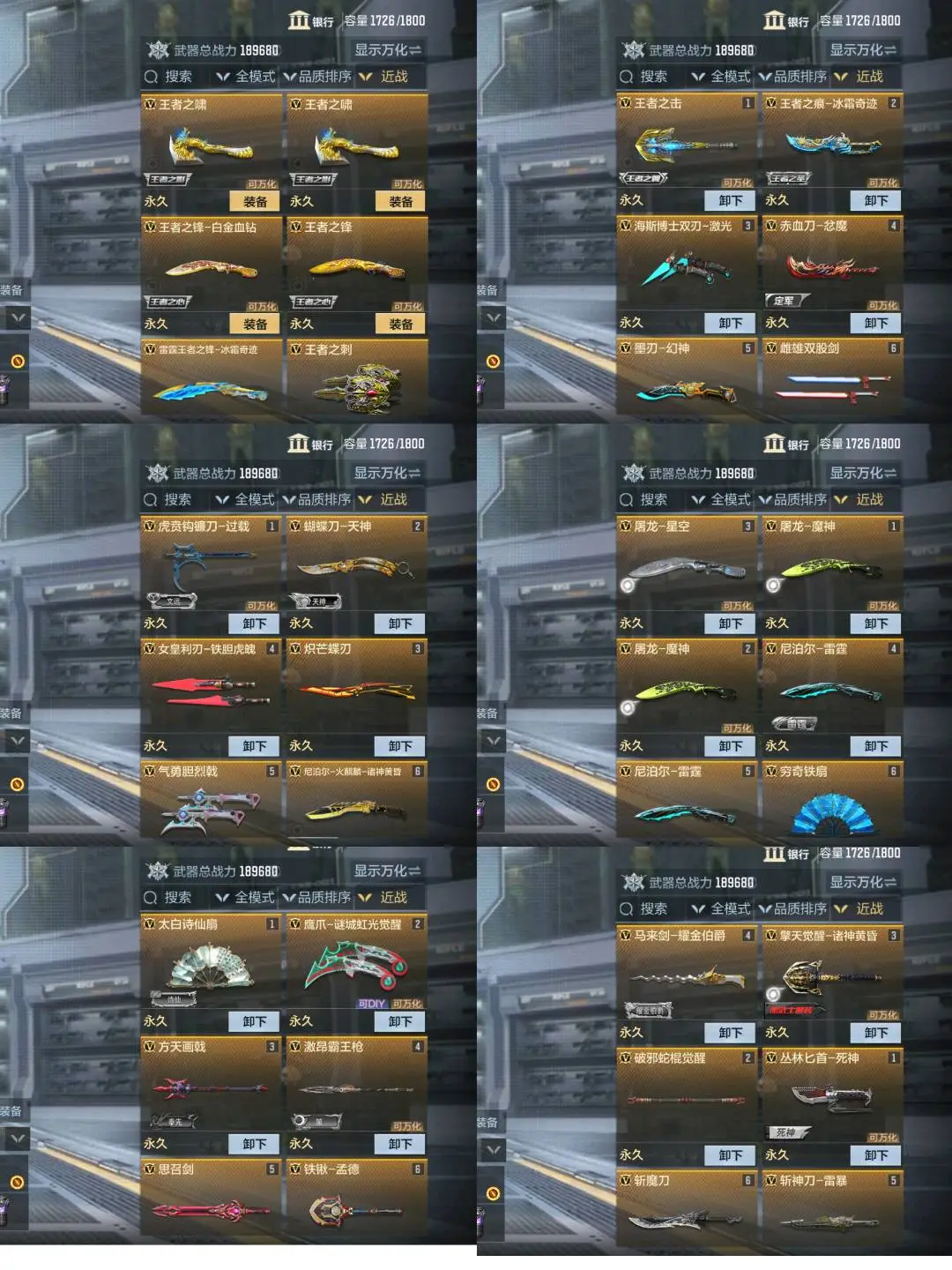 ❤️🔥近战:冰霜雷霆王锋✨白金王锋✨冰霜王痕✨王啸✨王刺✨王击✨赤血刀忿魔✨墨刃幻神✨雌雄双股剑✨虎贲钩镰刀过载✨炽芒蝶刀✨气勇胆烈戟✨方天画戟✨激昂霸王枪✨思召剑✨孟德铁铲✨穷奇铁扇✨火麒麟尼泊尔诸神黄昏✨屠龙魔神✨雷霆尼泊尔✨死神匕首✨斩神刀雷暴✨