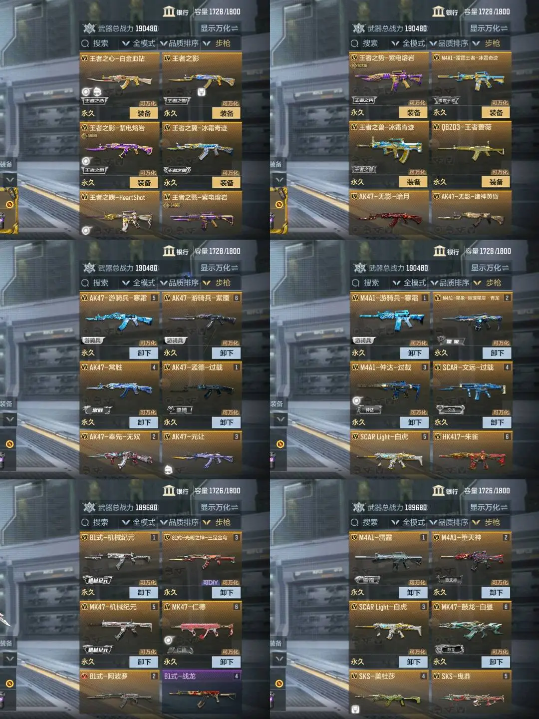 ❤️🔥常用步枪:紫电熔岩王影✨紫电熔岩王戮✨紫电熔岩王势套✨女团王魄至尊✨白金王心至尊✨冰霜雷霆王者至尊✨冰霜王翼套✨冰霜王兽✨王者蔷薇✨寒霜游骑兵✨奉先无双✨孟德过载✨元让✨星象璀璨星辰✨仲达过载✨文远过载✨白虎✨朱雀✨81机械✨81光明神✨81阿波罗✨81战龙✨MK47机械✨仁德✨雷霆套✨堕天神✨美杜莎✨鼓龙白昼✨