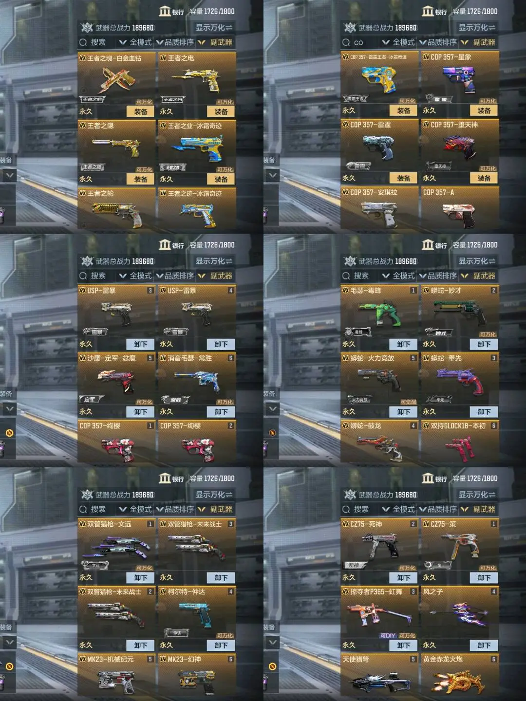 ❤️🔥副武器:冰霜雷霆王者COP✨冰霜王业✨冰霜王迹✨白金王魂✨王电✨王轮✨王隐✨星象COP✨雷霆COP✨堕天神COP✨安琪拉COP✨绚樱COP✨COP-A✨雷暴USP✨沙鹰定军忿魔✨消音毛瑟常胜✨毛瑟毒蜂✨蟒蛇奉先✨蟒蛇秒才✨蟒蛇鼓龙✨本初手枪✨双管猎枪文远✨双管猎枪未来战士✨柯尔特仲达✨MK23机械✨MK23幻神✨