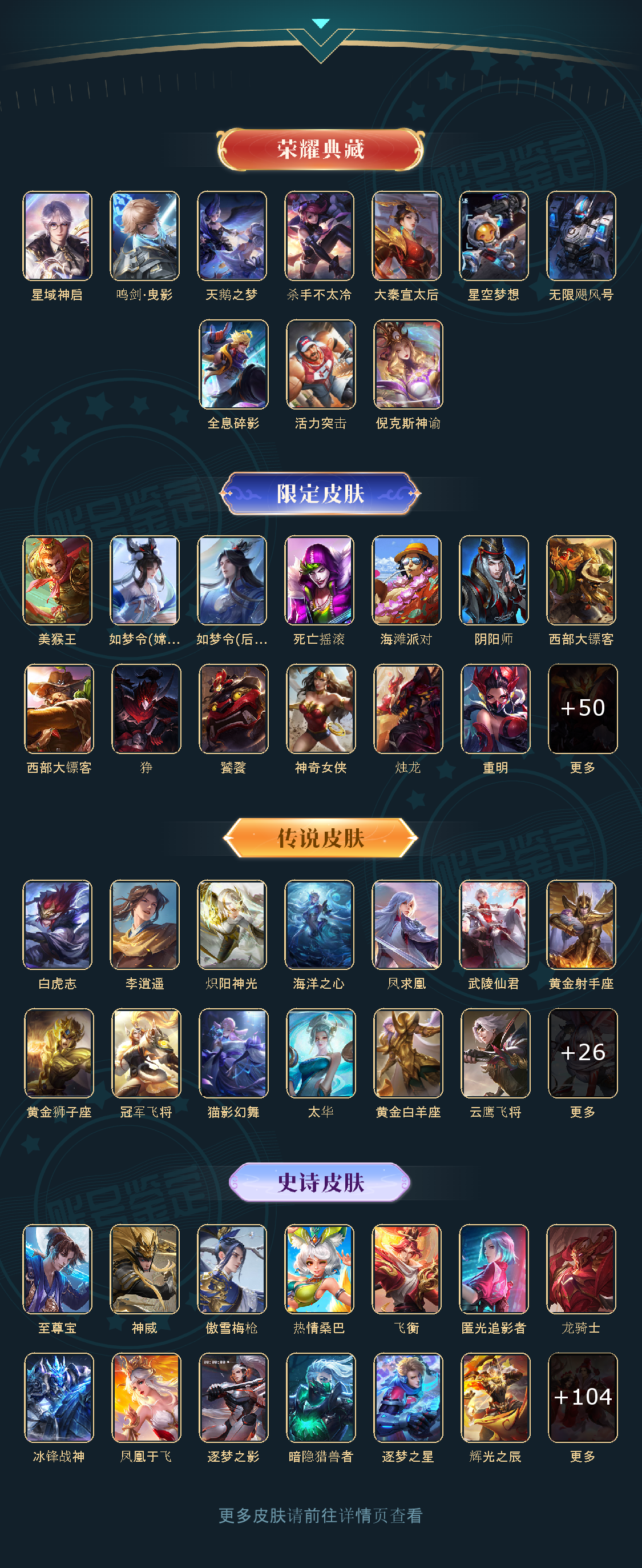 冰锋战神/街头霸王/天鹅之梦/至尊宝/杀手不太冷/大秦宣太后/凤求凰/热情桑巴/逐梦之影/武陵仙君/神奇女侠/星空梦想/无限飓风号/黄金狮子座/全息碎影/大圣娶亲/冰霜恋舞曲/白虎志/朱雀志/活力突击/太华/飞衡/梁祝/倪克斯神谕/白鹤梁神女/匿光追影者/鸣剑·曳影/星域神启/李逍遥/武圣/奔雷神使/神威/傲雪梅枪/时雨天司