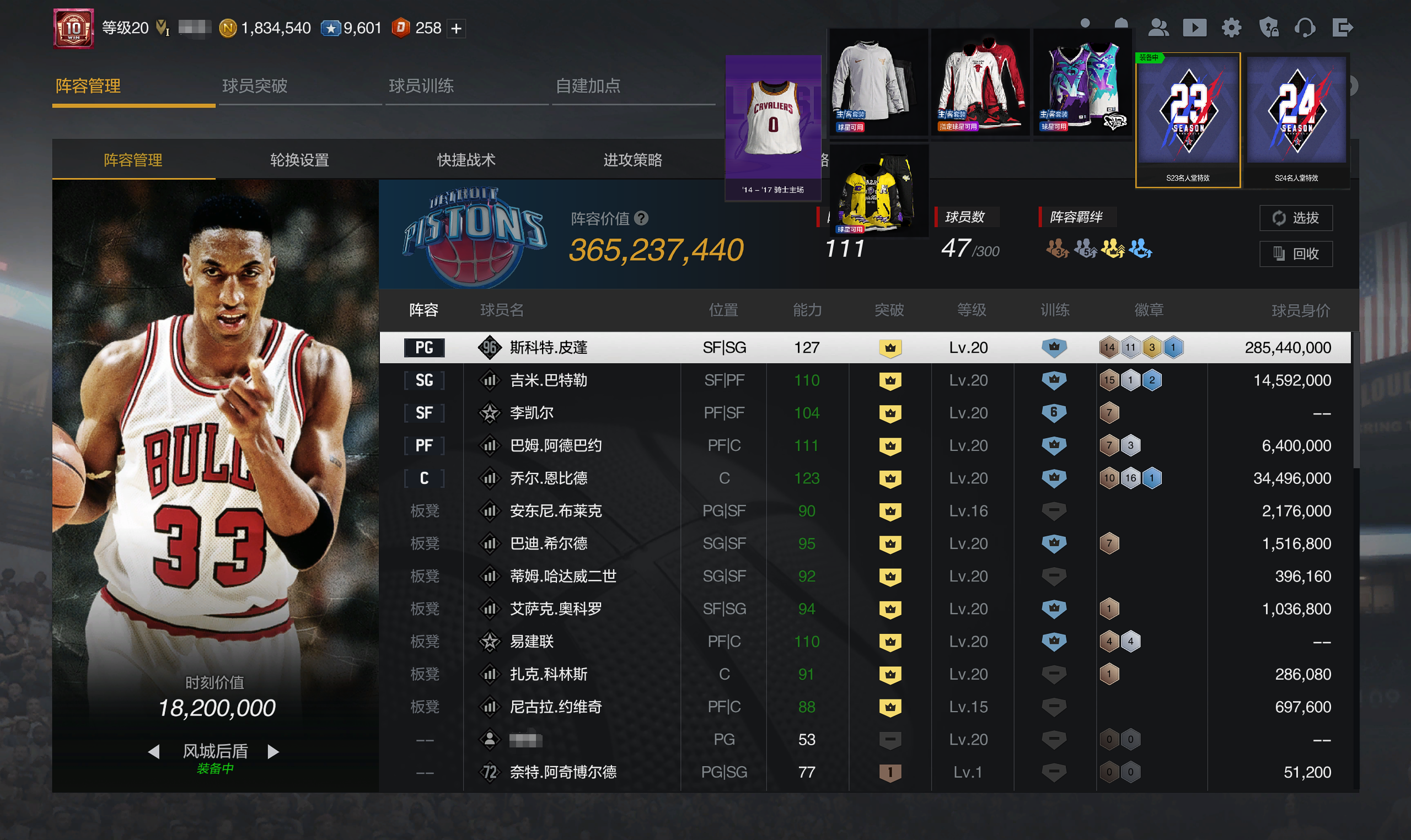 满突时刻皮蓬带队 斯科特皮蓬 乔尔恩比德 阿德巴约 吉米巴特勒+王朝阵容
