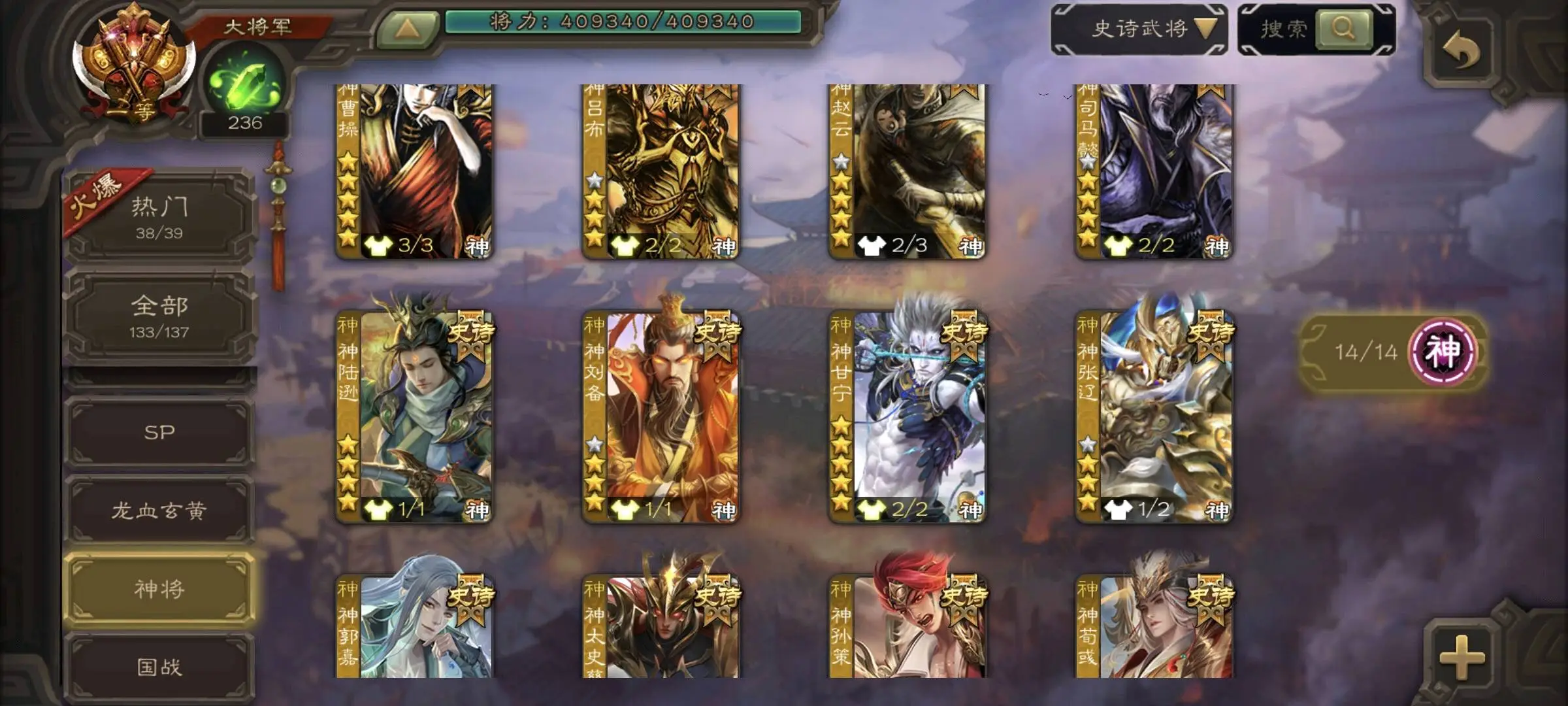 神——神吕布,神赵云,神司马懿,神陆逊,神刘备,神甘宁,神张辽,神太史慈,神荀彧,神曹操,神郭嘉,神孙策,神华佗