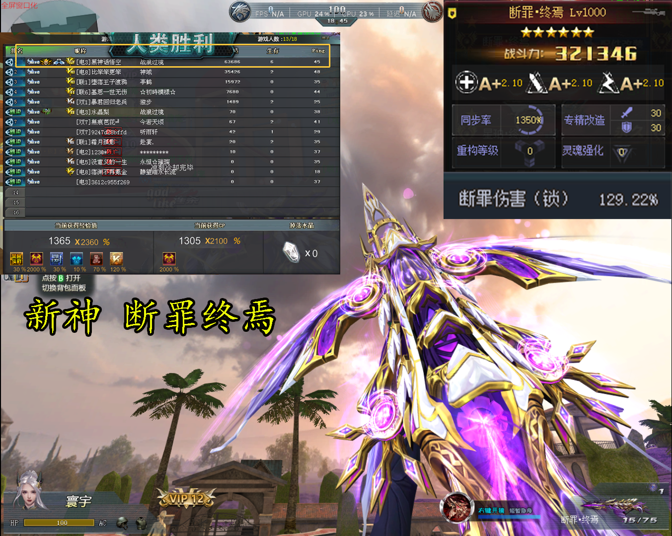 全能神断罪终焉紫黛130符文恒星之主♥巨阙蝴蝶刀♥3200w战力三强化星珀♥全彩金贰♥全英雄全变异体