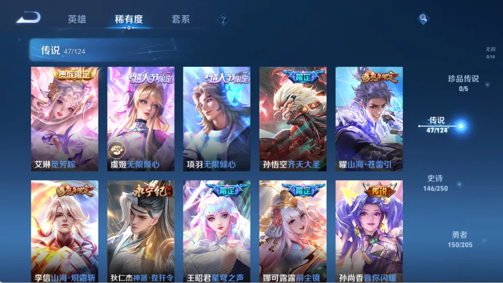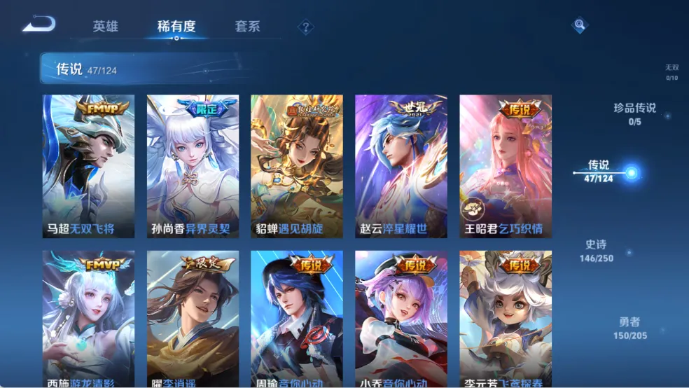 天鹅之梦,星空梦想,无限飓风号,鸣剑·曳影,九霄神辉,天魔缭乱,白虎志,默契交锋(兰陵王),李逍遥,默契交锋(花木兰),零号·赤焰,炽阳神光,热情桑巴,至尊宝,神威,纯白花嫁,真爱至上,匿光追影者,无双飞将,异界灵契